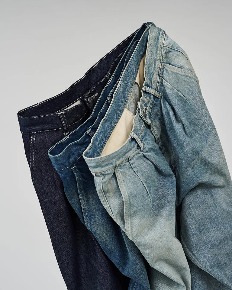 Graphpaper Selvage Denim Two Tuck Tapered Pants - DARK FADE