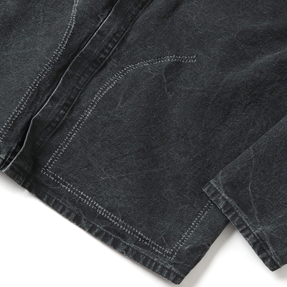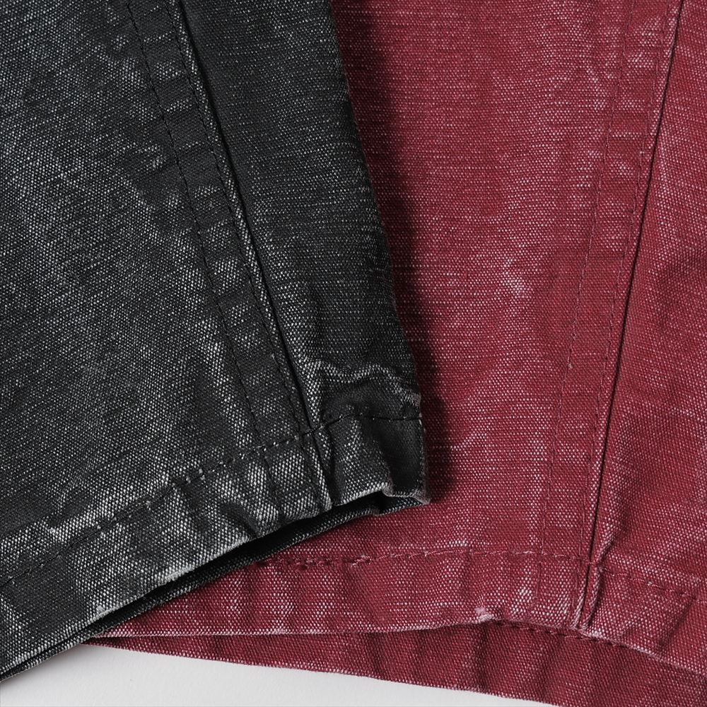 A special process creates random scuffs and marks on the fabric, and the product changes over time with wear, like denim, which gives it a more powerful look.