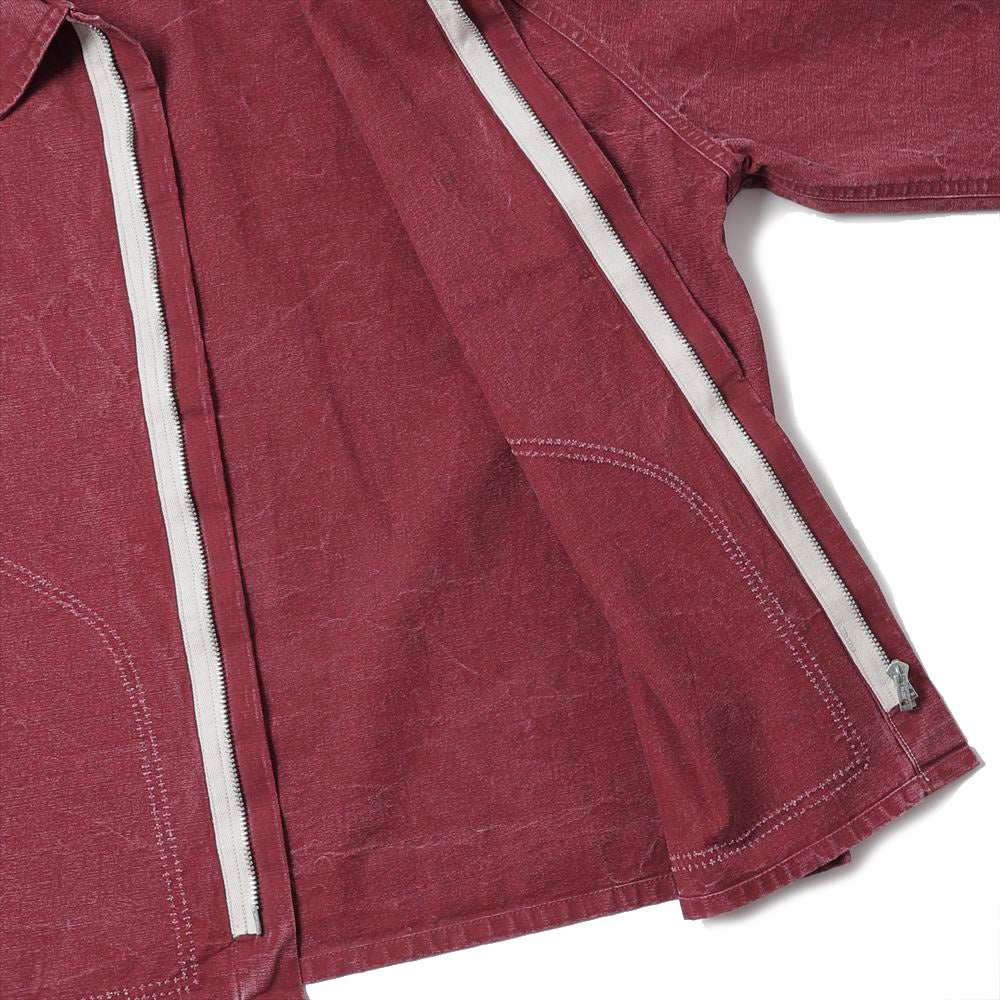 The outer fabric is a cotton canvas made from thick organic cotton yarn that is tightly twisted in both warp and weft directions, with a pigment coating on both sides.