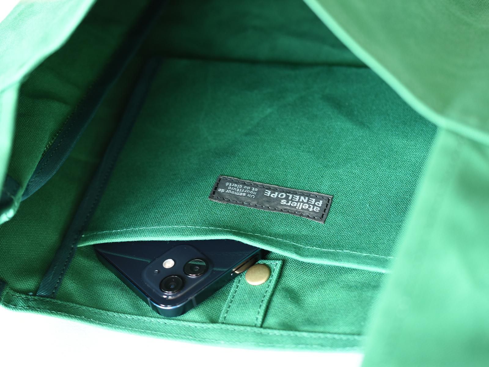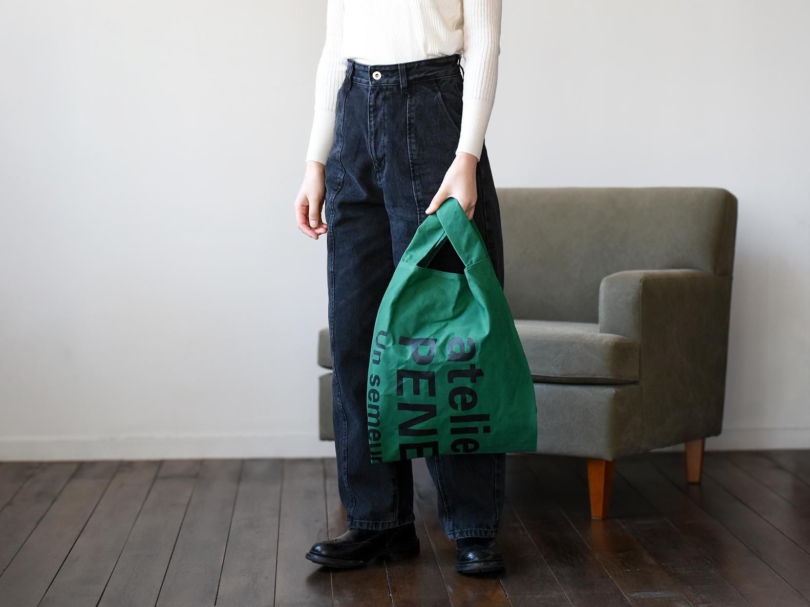This bag is made of No. 10 paraffin canvas. The large logo print is the highlight of the bag. It is made of durable fabric and has a large capacity, so it is recommended as a shopping bag as well as for everyday use. The hanging pocket on the inside is useful for storing small items. The handles are attached like animal ears, so it was named Ear.