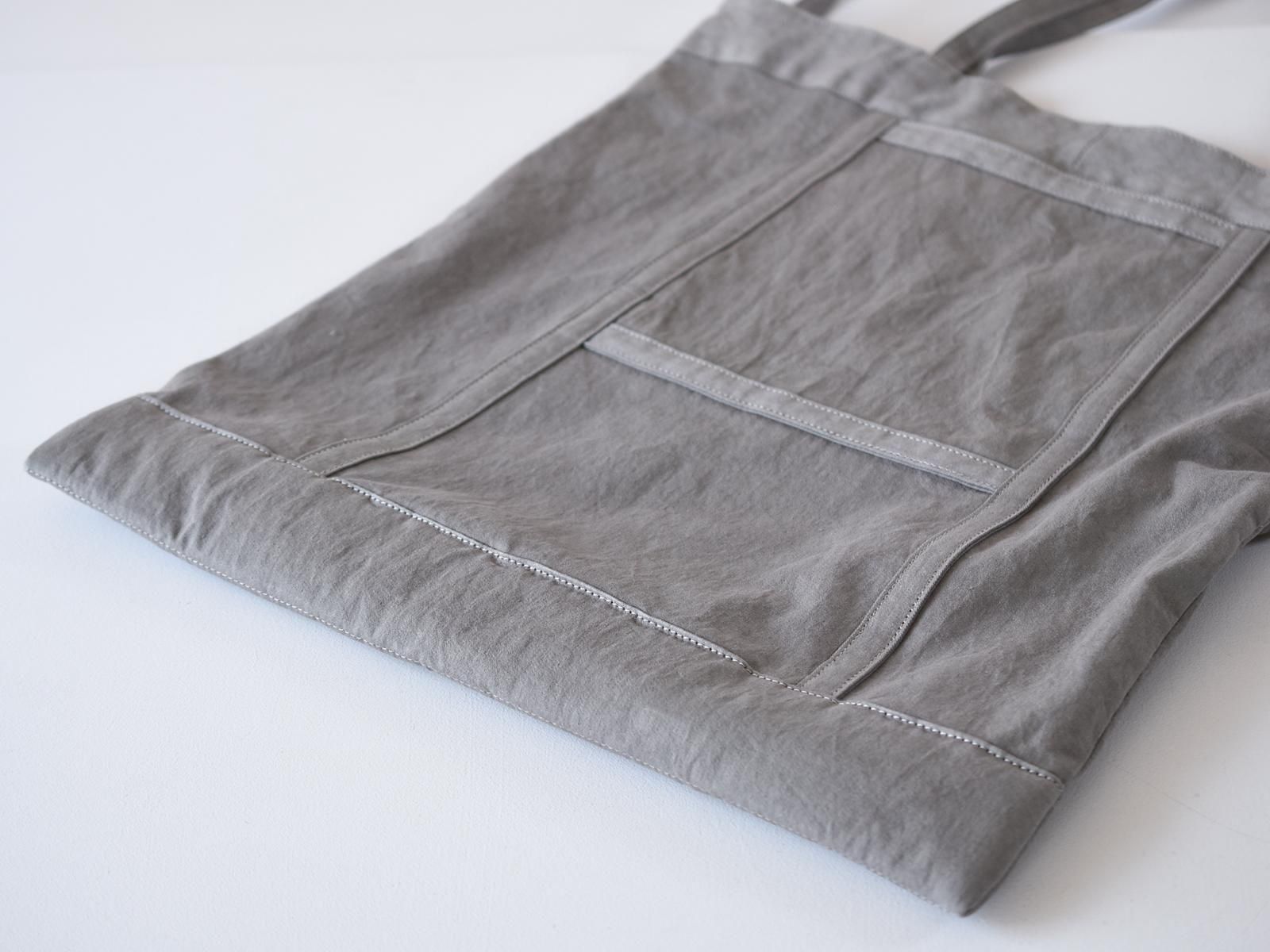This large-capacity bag is made of 100% cotton and was created with the image of carrying a lot of things in daily life. Quilted cotton is sandwiched in the bottom to give it cushioning so that it can withstand some impact. You can enjoy changing the nuance of the bag by squeezing it with the short handles on both ends. The design that borders the handles and pockets resembles a ladder, which is why it was named "lighter" (German).