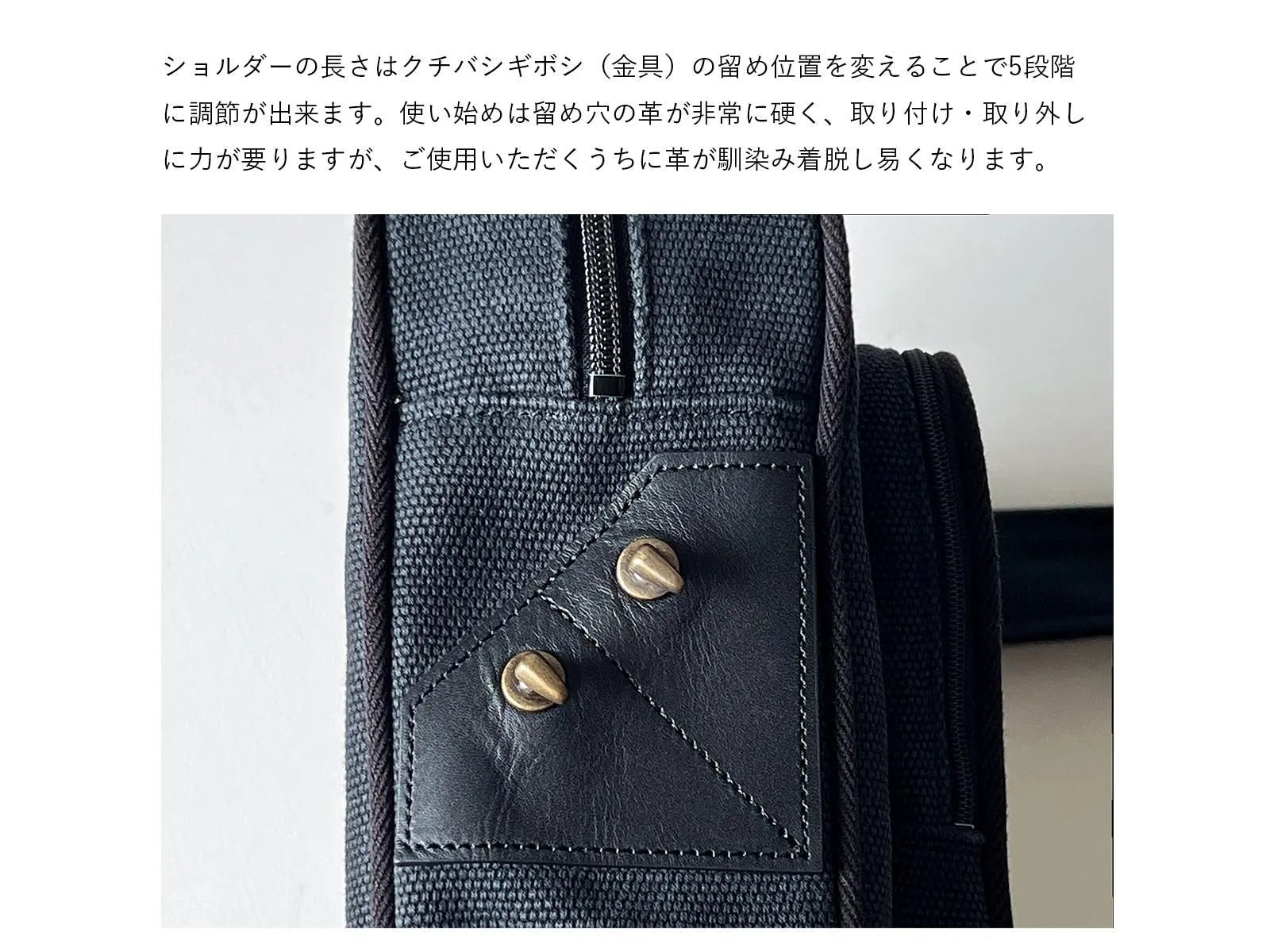 Cotton [Thick-woven cotton oxford], Lining: Nylon, Shoulder adjustment part: Cowhide leather
