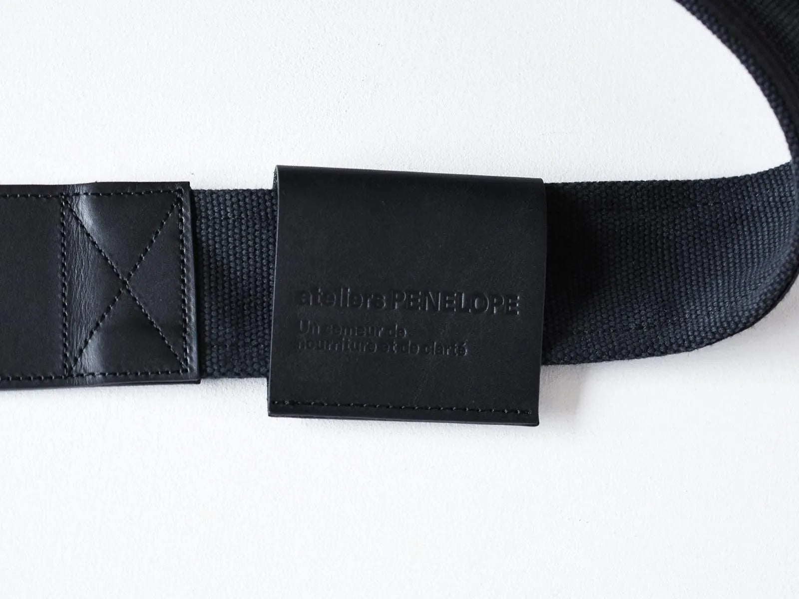 The shoulder strap length can be adjusted to five positions using a fastening mechanism. The tip of the strap can be folded over and secured with a leather belt loop featuring a logo embossing.