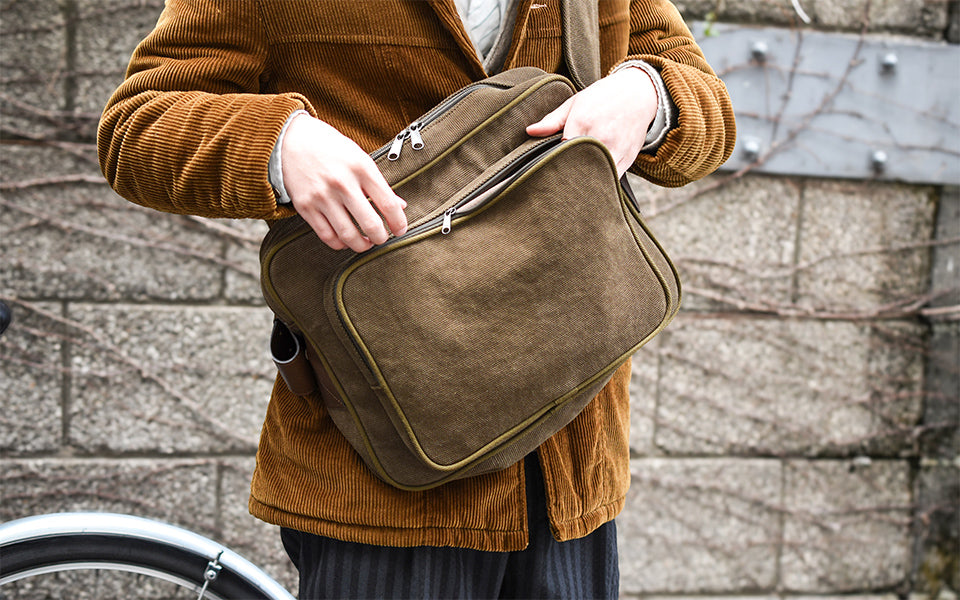 Olive / Nylon lining: Khaki, Shoulder strap leather: Brown