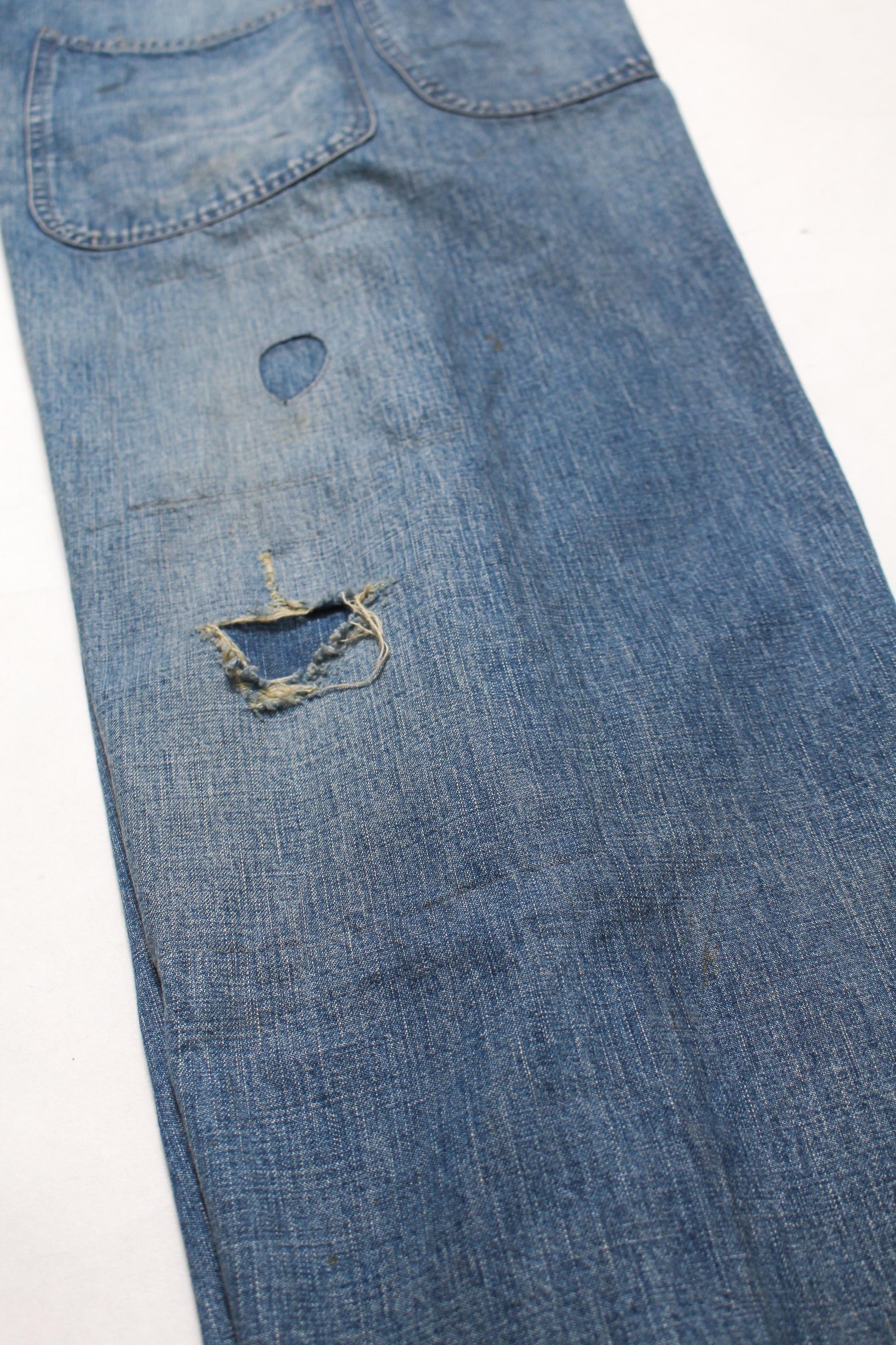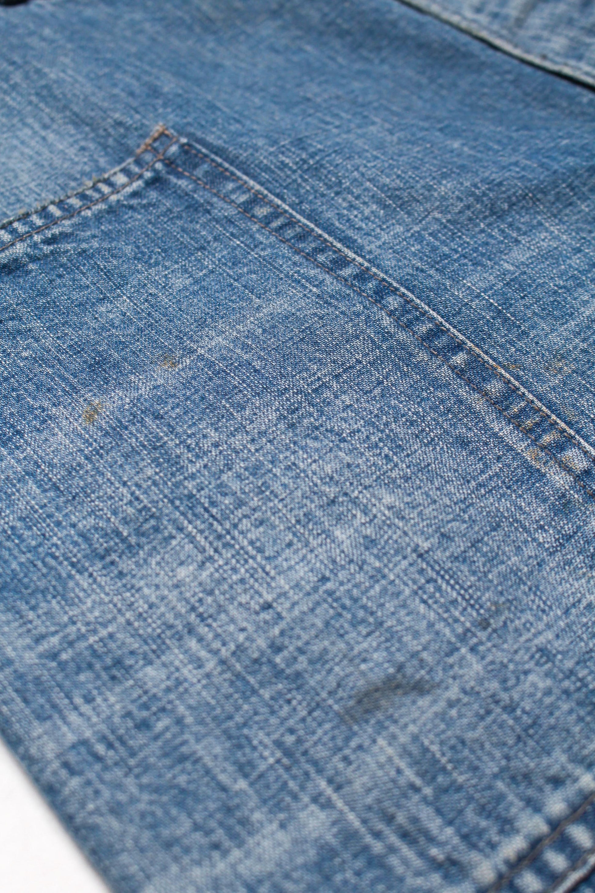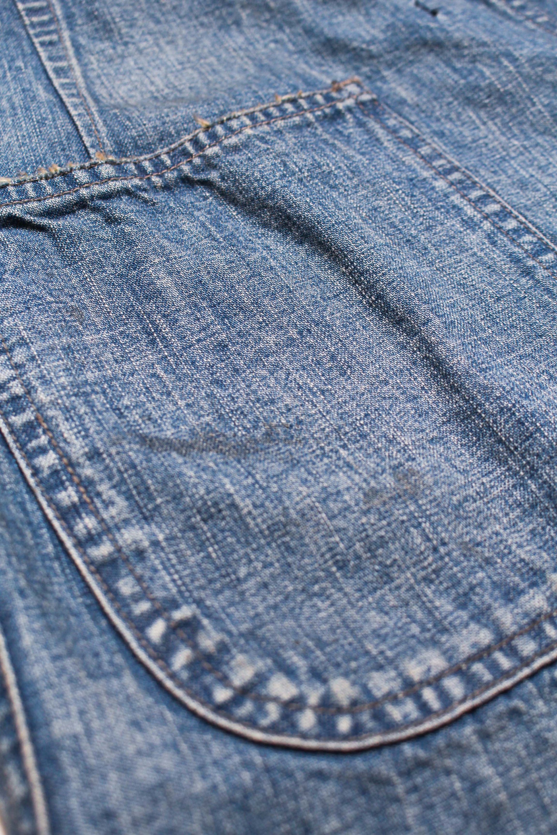 These USN M44 trousers were used by the U.S. Navy during World War II for work purposes. This model is most notable for its design with no side seams, created to provide comfort and ease of movement. Denim dungaree material is used, with specifications that endure as durable and practical work wear. The processed feeling of repairing the torn parts by work pursues realism, and the finish makes those who love old clothes and fashion nod their heads in agreement.