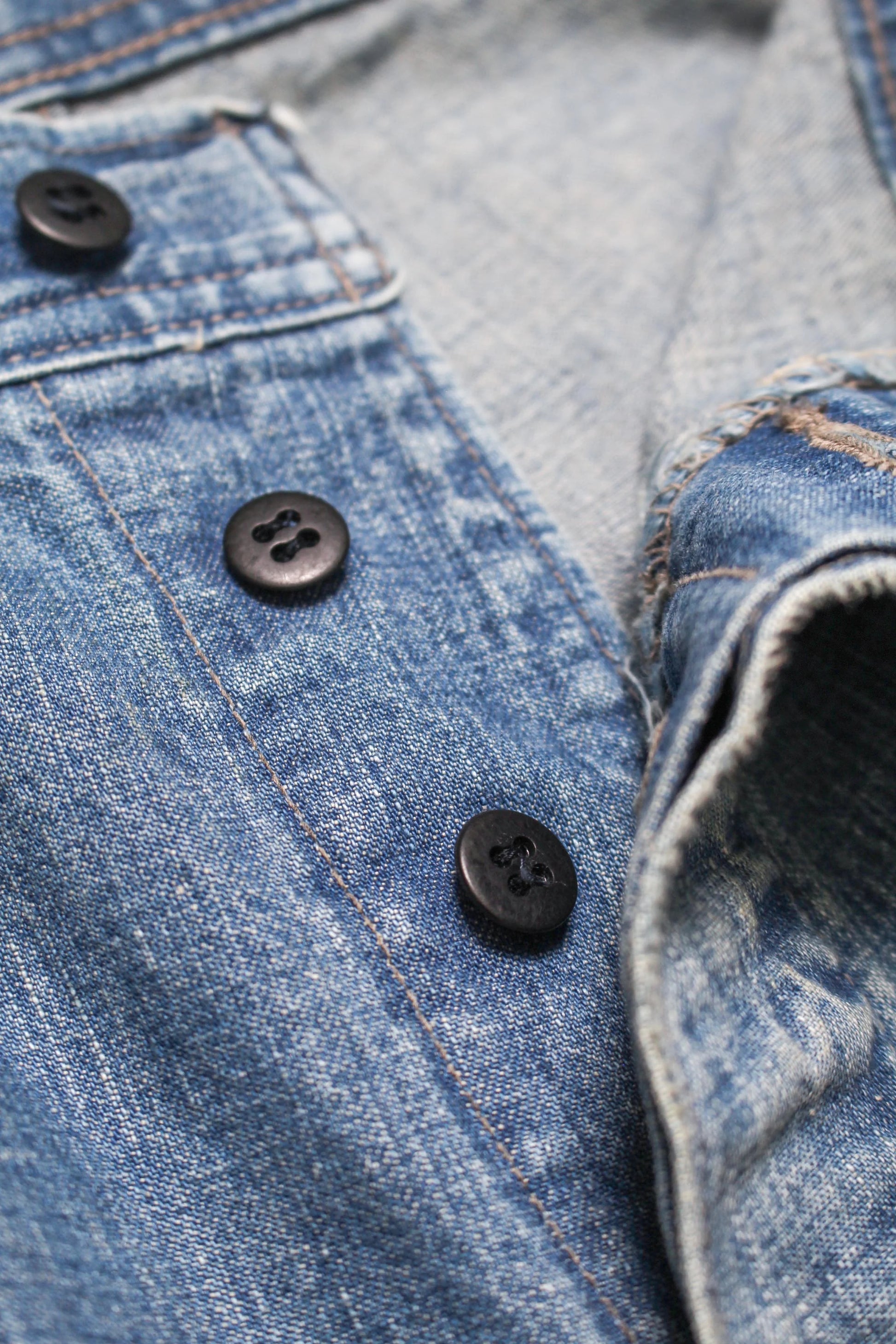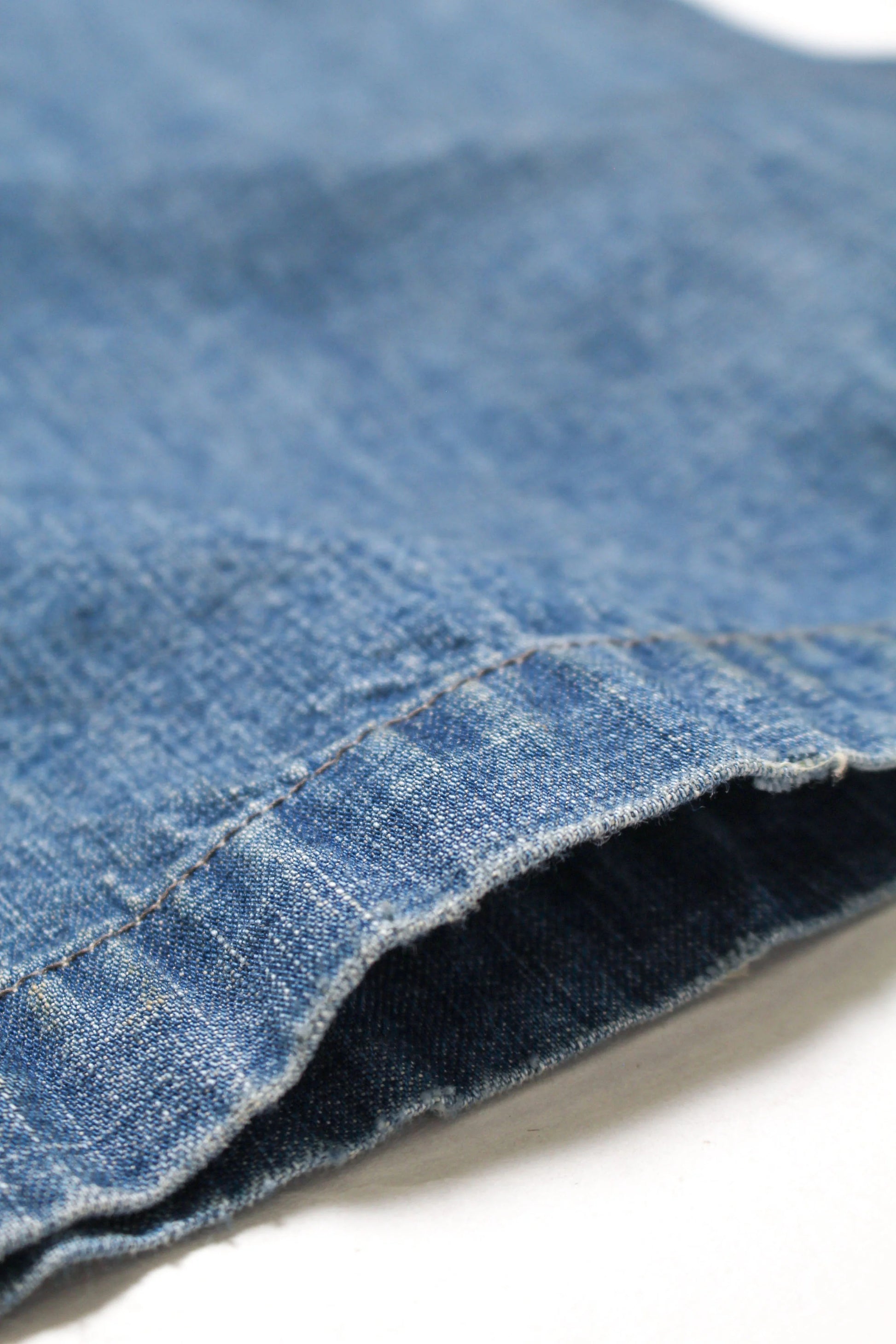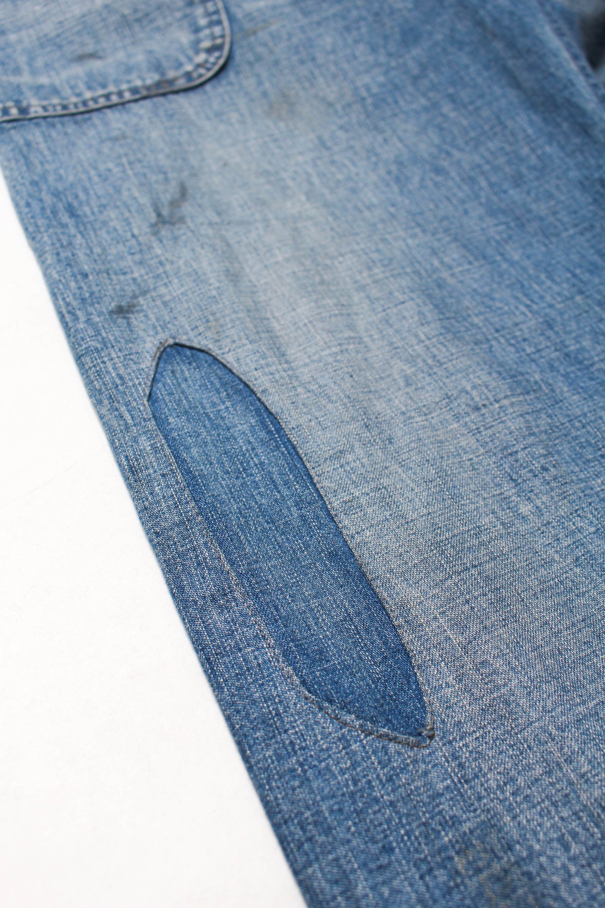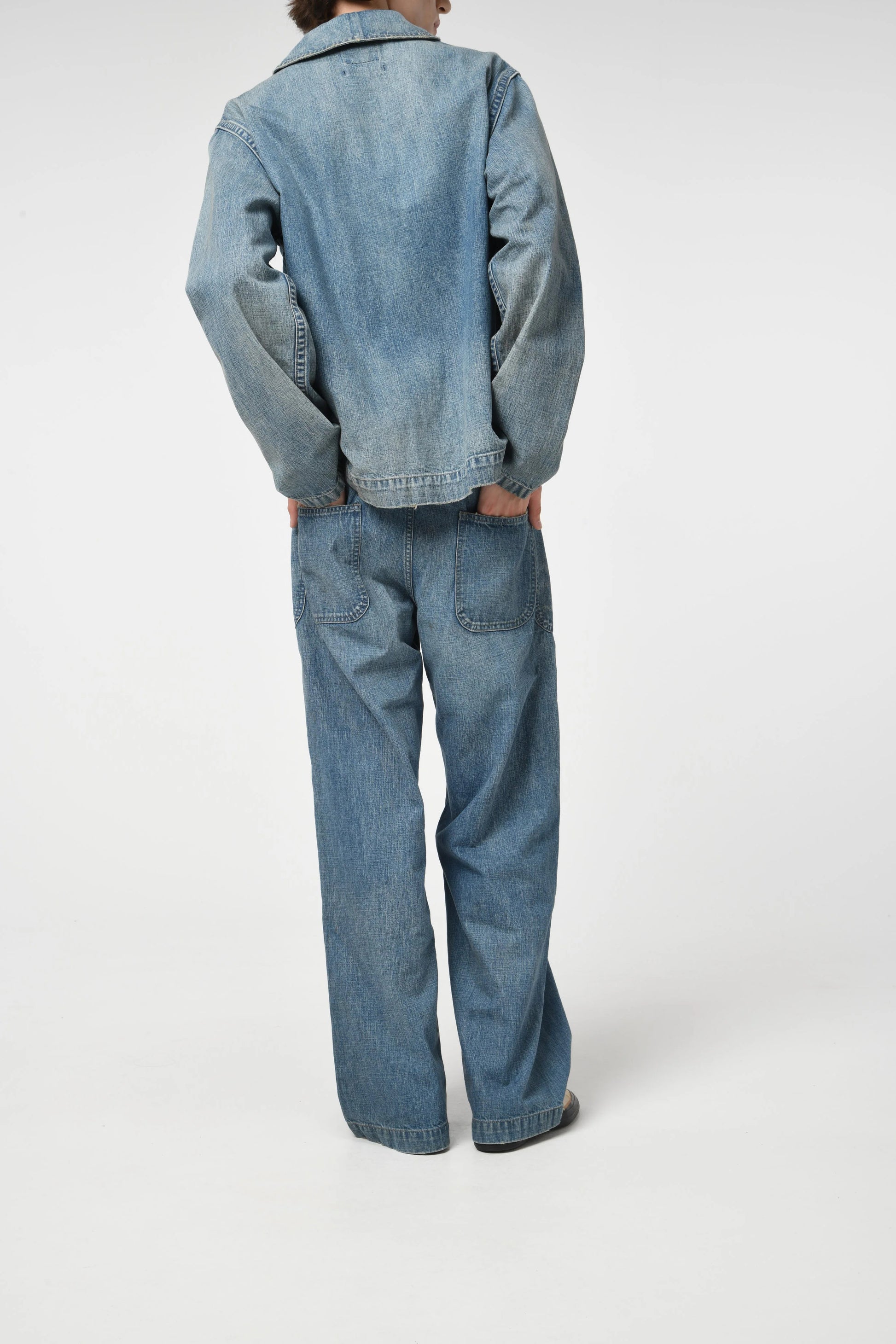These USN M44 trousers were used by the U.S. Navy during World War II for work purposes. This model is most notable for its design with no side seams, created to provide comfort and ease of movement. Denim dungaree material is used, with specifications that endure as durable and practical work wear. The processed feeling of repairing the torn parts by work pursues realism, and the finish makes those who love old clothes and fashion nod their heads in agreement.