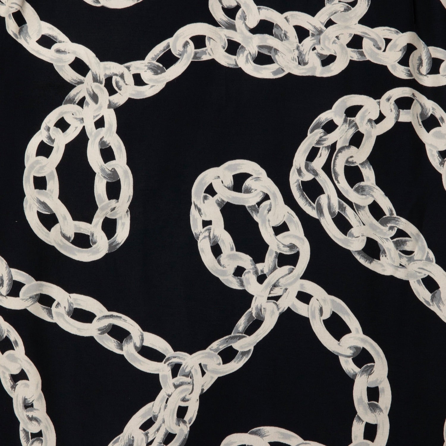 Made of rayon fabric with an original chain pattern. Wide silhouette.