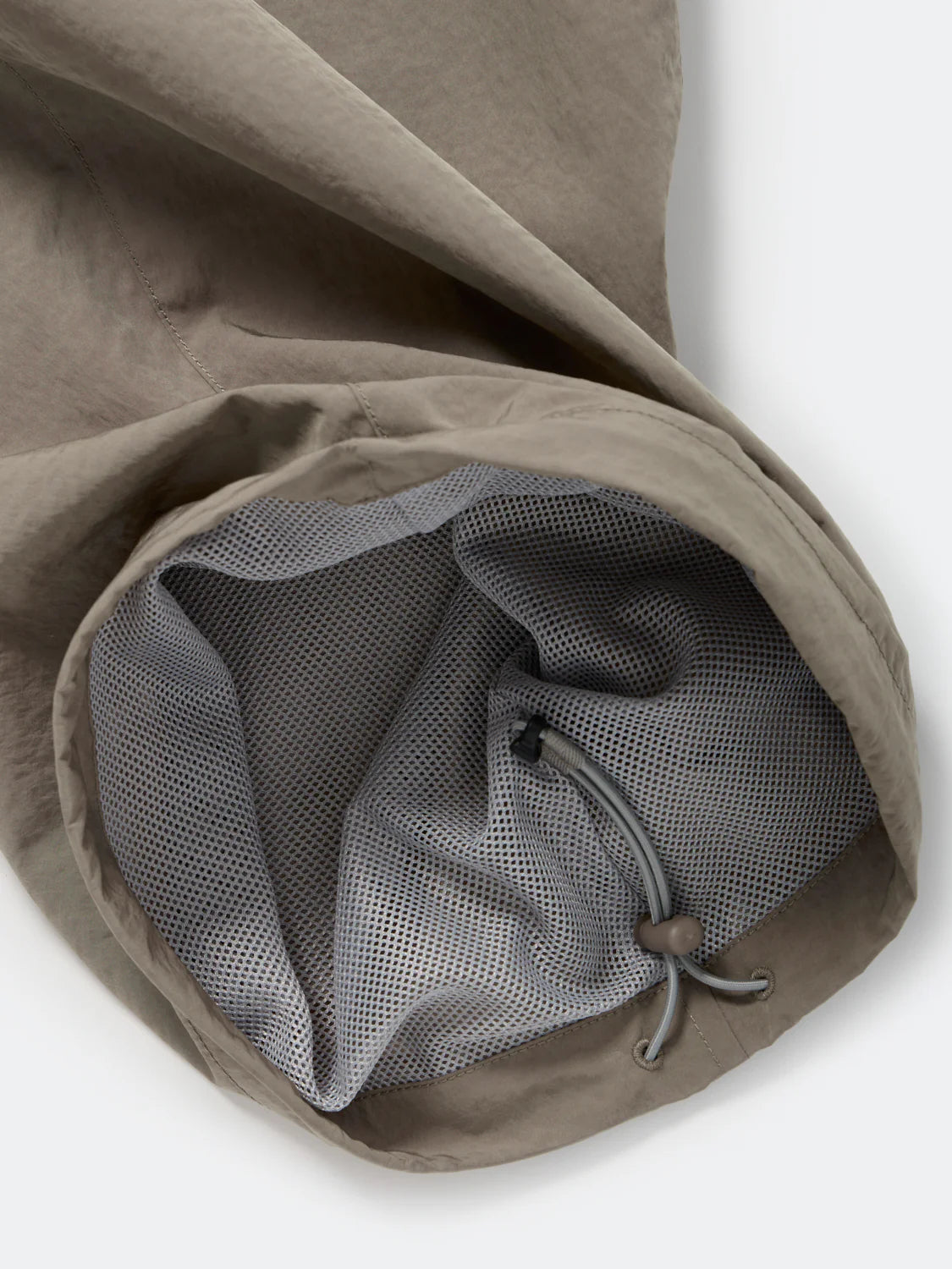 This vintage-inspired material uses a nylon-polyester split warp and a nylon weft. The nylon side is highly shrunk during the processing process to create a wrinkled appearance. The split yarn gives it a soft texture, while the chambray-like feel creates a unique atmosphere.