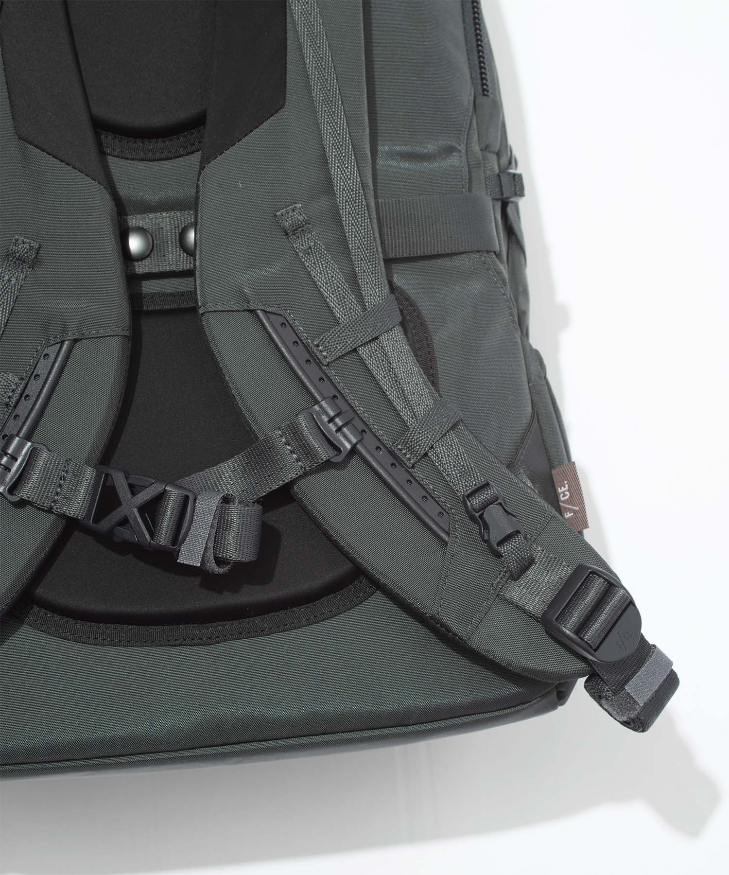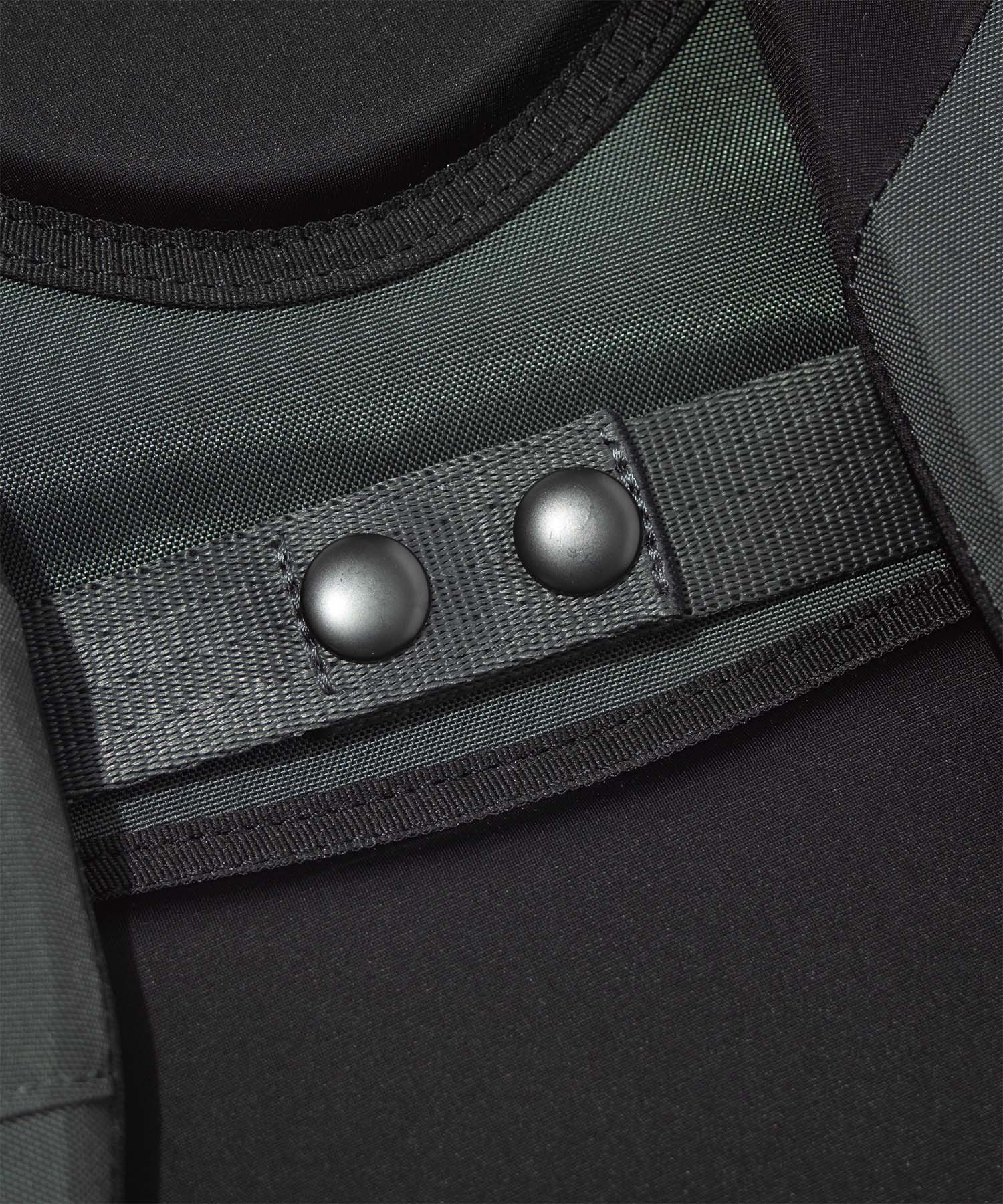 The back of the shoulders and the back of the back are made of durable neoprene, a material also used in wetsuits, making this a functional backpack. The shoulders are equipped with a MOUNTING T SYSTEM for attaching sakosh, pouches, etc.