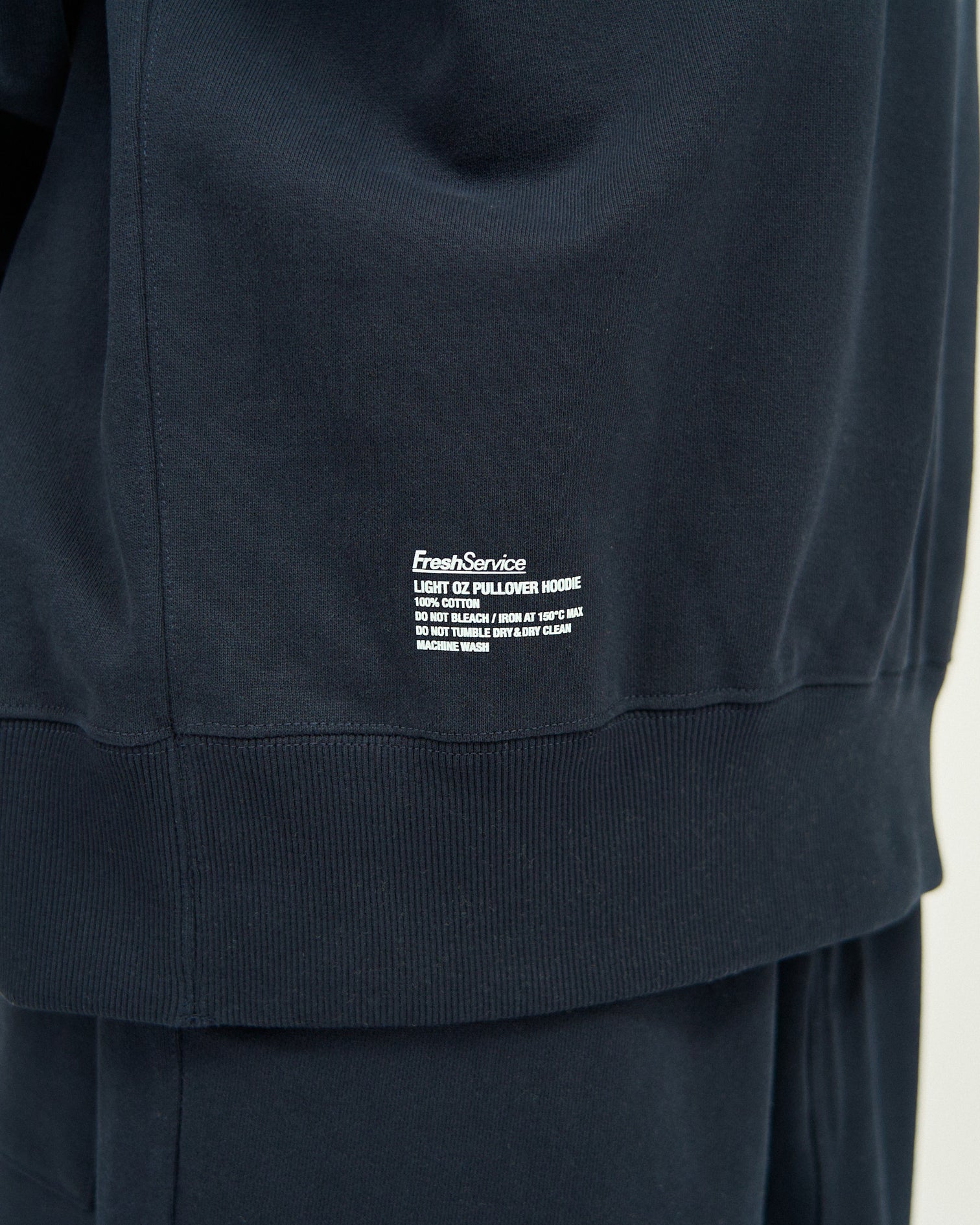 A pullover hoodie of just the right thickness for use throughout the long seasons, from early spring to autumn and winter. The air-spun yarn has a dry surface, while the loosely twisted loop surface is soft to the touch. It has a loose fit typical of FreshService, from the body to the arms, and the hood is double-layered for a three-dimensional look. *Shrinkage may occur depending on washing method.