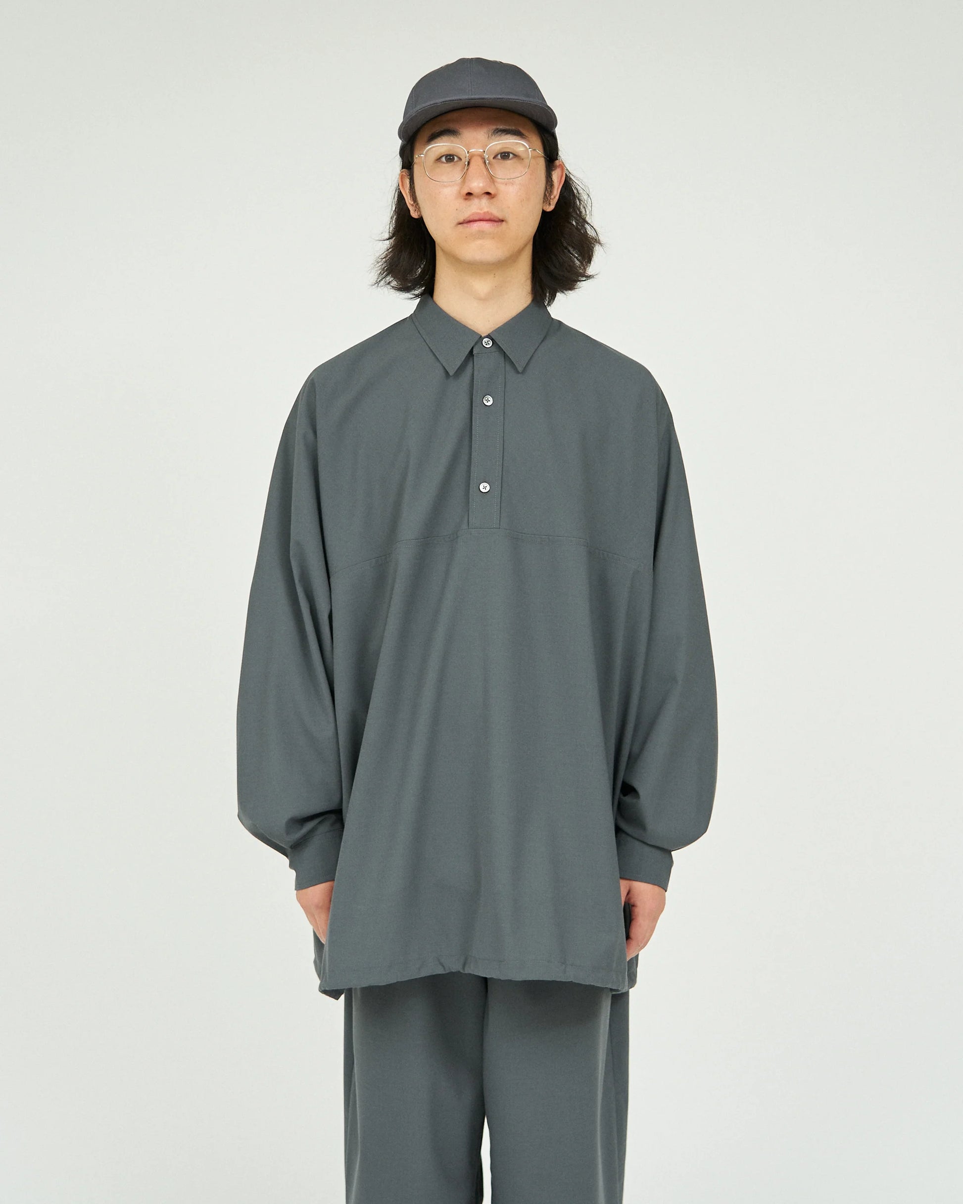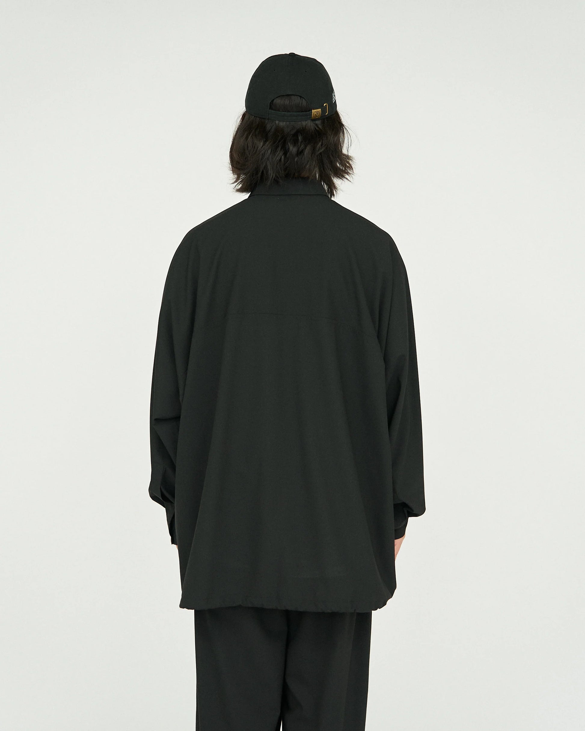 Anorak-type shirt made of wool-like polyester fabric.
