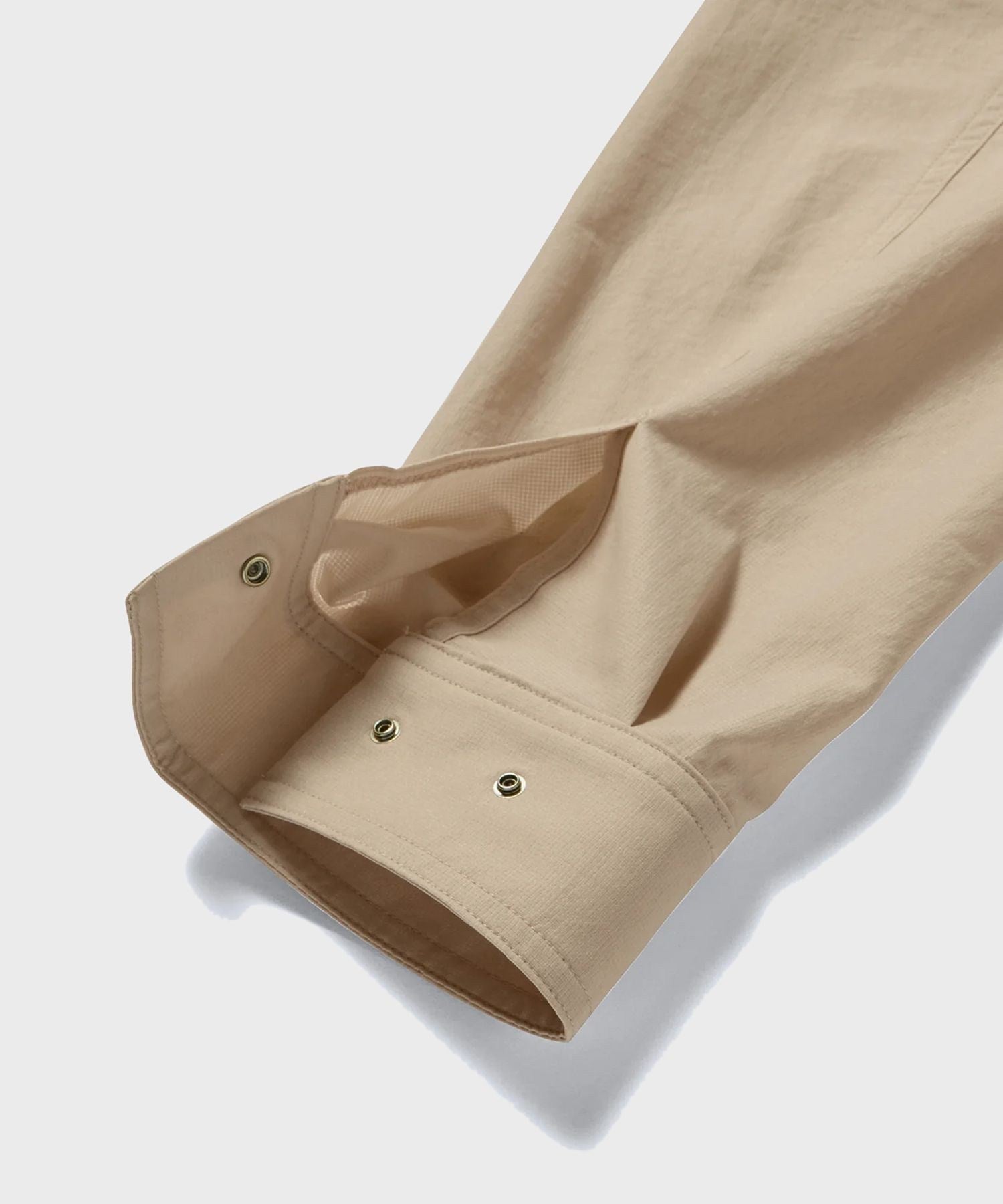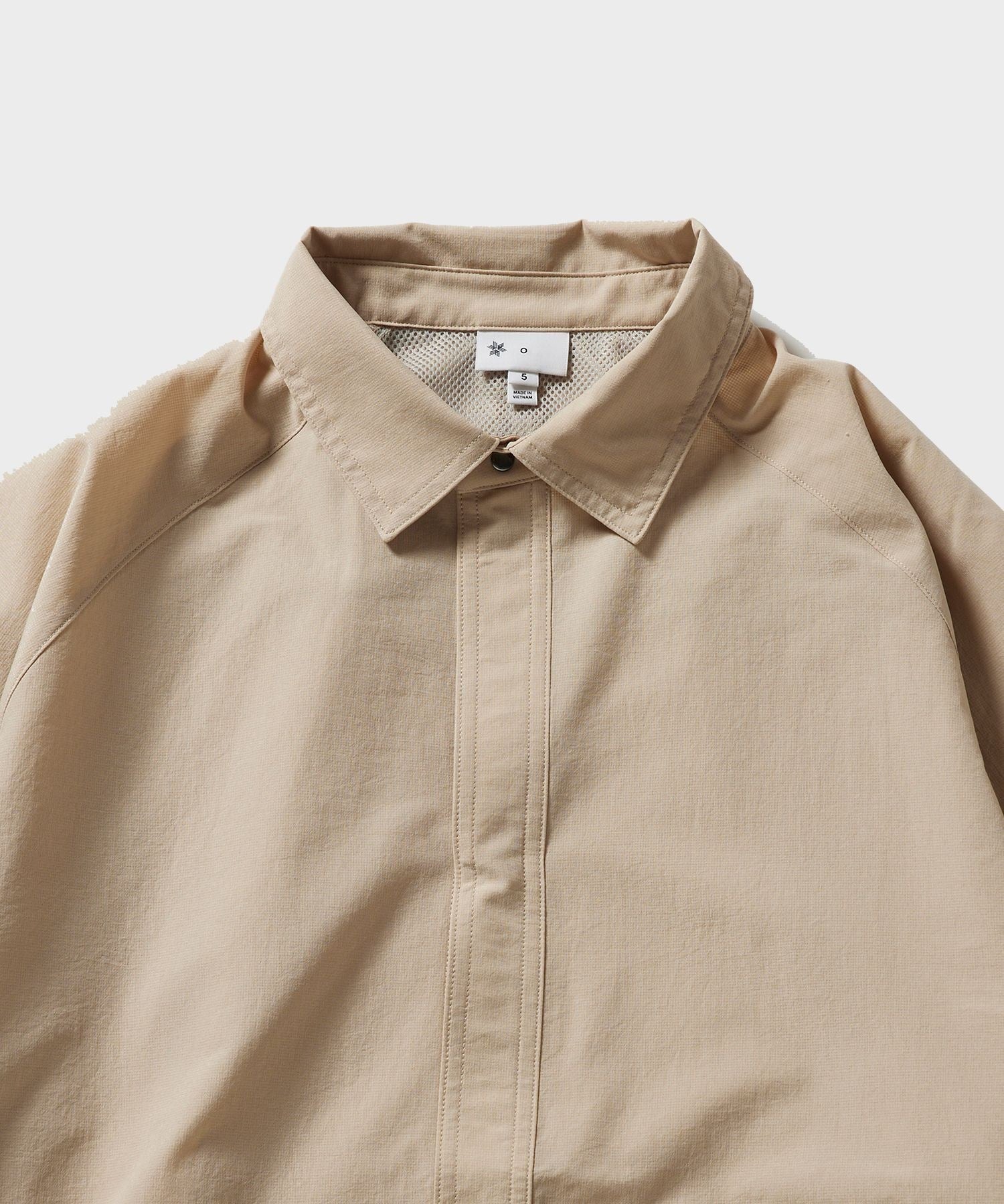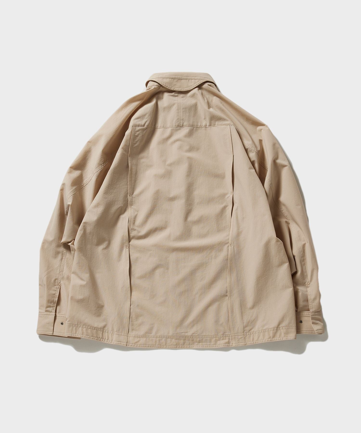 This shirt jacket has an interlocking structure that intertwines parts from top to bottom, allowing air to flow inside the garment, creating a ventilation function.