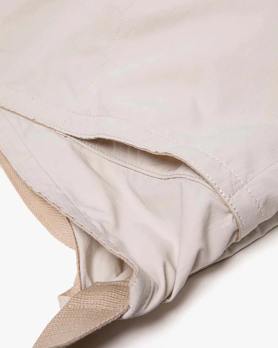 Crafted from sustainable nylon fabric recycled from textile waste, it features a matte finish and a washed finish for a relaxed feel.