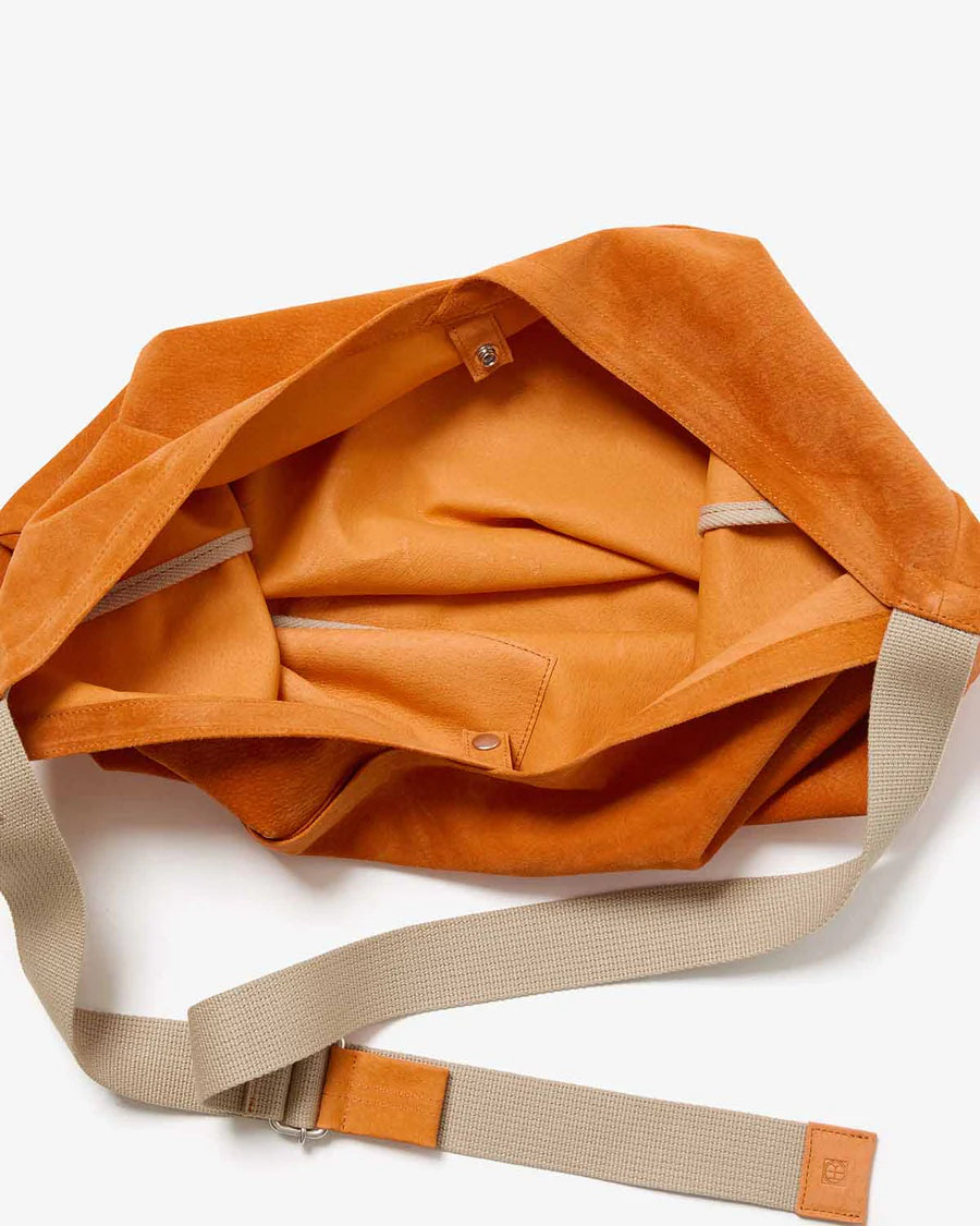 It features a unique shape and a diagonally positioned pocket, and is just the right size to fit A4-sized items. It can be carried by hand or over the shoulder, and the strap can be easily adjusted with a simple pull.