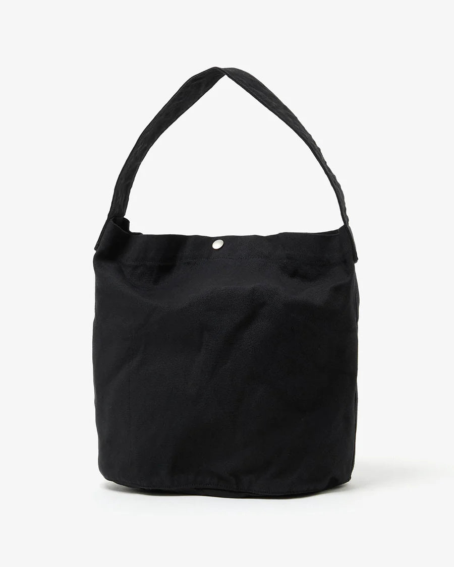 This shoulder bag is made from No. 8 canvas, a plain weave of twisted cotton yarn.