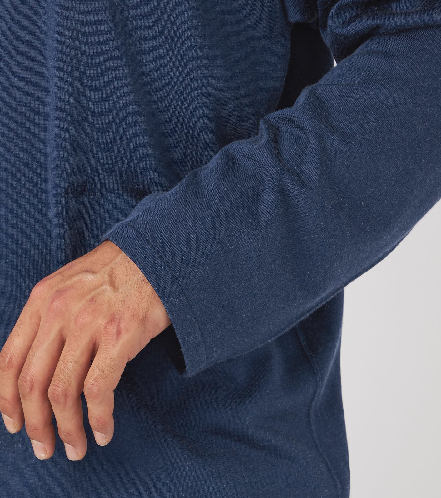 ・Long-sleeve T-shirt made with rayon rib jersey, featuring softness and luster by using 300D multifilament rayon for the outer yarn.