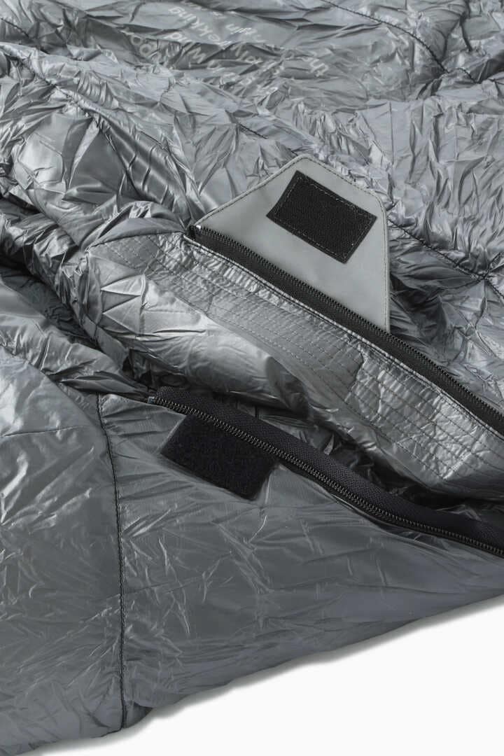A sleeping bag made in collaboration with NANGA, a Japanese-made down specialist. The Spanish duck down is washed in Japan and super water repellent to prevent wetting, which is a weakness of regular down sleeping bags. By enclosing 500g of 770 fill power down in a box quilt structure, you can sleep comfortably up to about -2 degrees. NANGA's safe and secure products are created by carefully performing each process, such as feather encapsulation, sewing, and manufacturing technology that utilizes skilled craftsmanship. A reflector print of the brand copy is applied on the special gun metallic color.