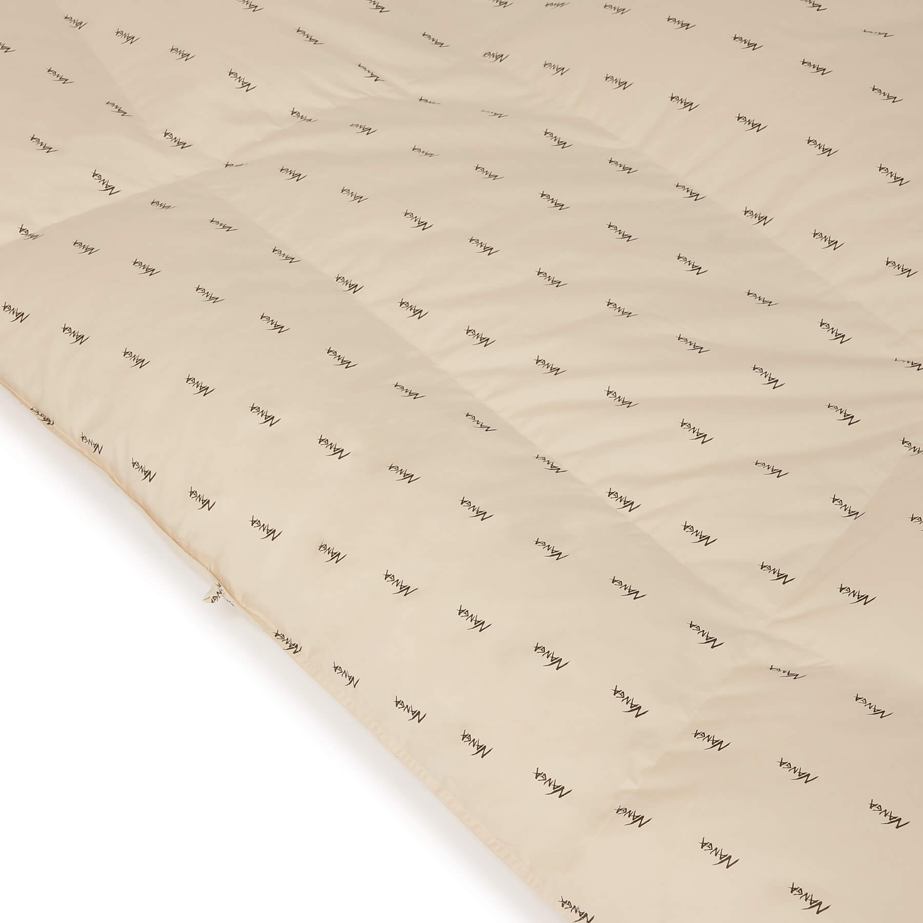 `Mummy'' was designed by tracing the shape of the human body, and the quilt shape and amount of feathers vary depending on the location. This mid-weight model is filled with 2/3 the amount of down compared to the regular model, so it can be tailored to your individual bedroom environment and preferences, and it also comes with a tape that allows you to dock it with blankets, etc.