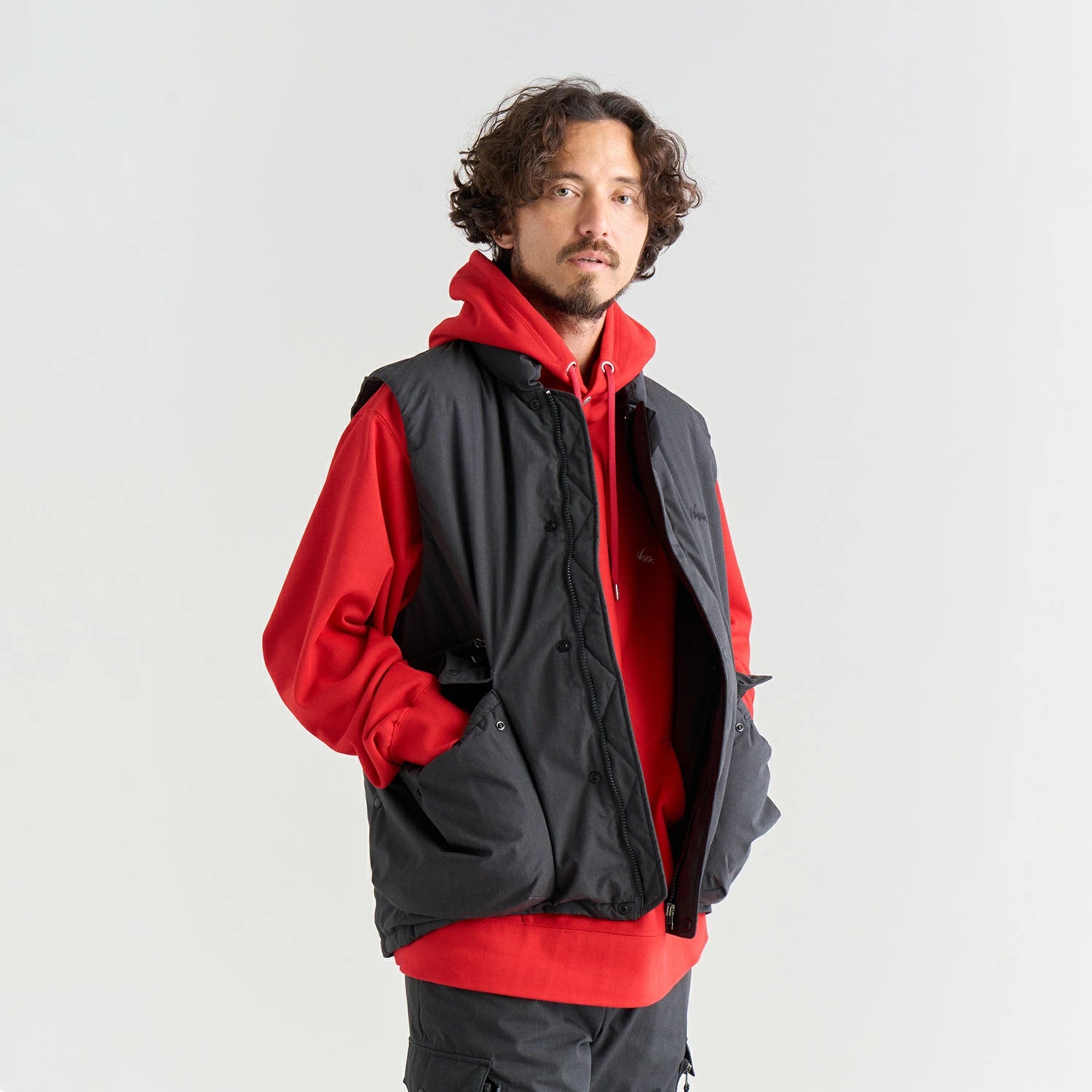 The first down vest type from the HINOC DOWN series expands the range of styling options along with the existing HINOC Down Jacket, and is a piece that can be flexibly adapted to the climate. This down vest can be worn from autumn to winter with thin to thick innerwear to maintain warmth and enjoy everyday casual coordination.