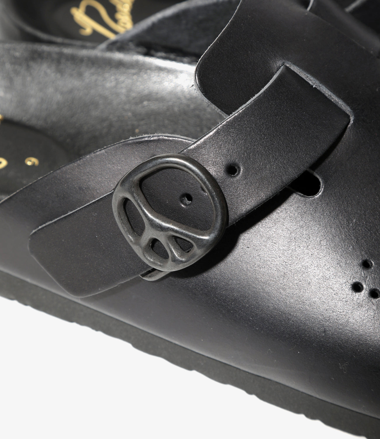 This authentic clog sandal is decorated with a peace sign buckle, a papillon pattern, and an outsole with a papillon pattern. This season, it is available in a stylish smooth leather design. It is a basic design that is packed with NEEDLES' signature design.