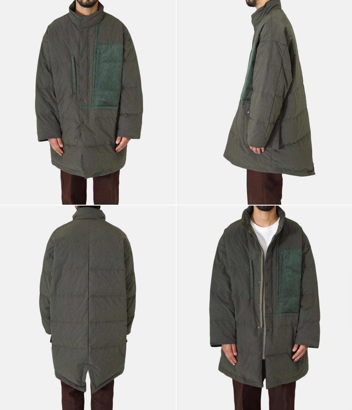 From the popular series updated with improved water repellency, the Weather Down Military Coat, a strong winter ally, is now available. It is warm enough to cover up to the waist, and features a silhouette that is excellent for town use with reduced puffiness due to padding. The zip and snap buttons prevent drafts and keep you warm both inside and out.