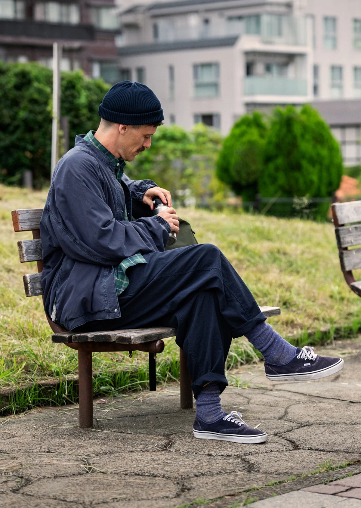As the name suggests, these pile socks are fully reversible and can be worn inside out. The design is inspired by reversible college T-shirts from the 1970s. Knitted on the same machine used for our “R1001 DOUBLE FACE CREW SOCKS,” each pair features contrasting cotton yarns on the inside and outside for a distinctive two-tone look.