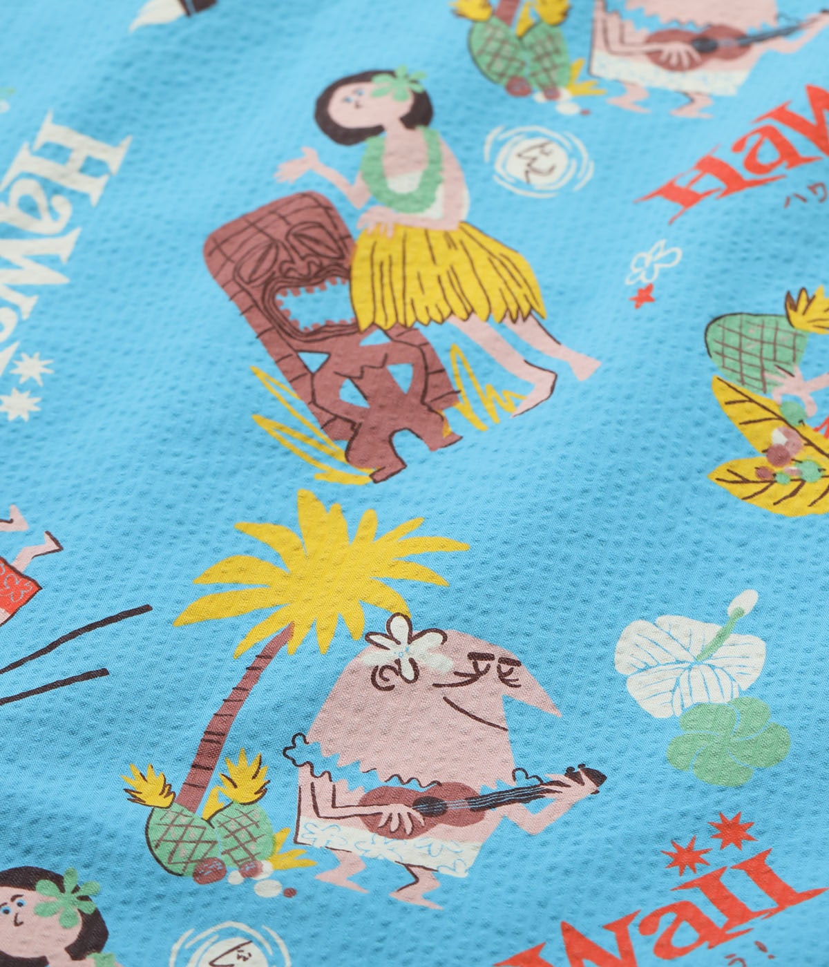 SUN SURF COTTON SEERSUCKER OPEN SHIRT “TRIP TO HAWAII” by 柳原良平 with MOOKIE