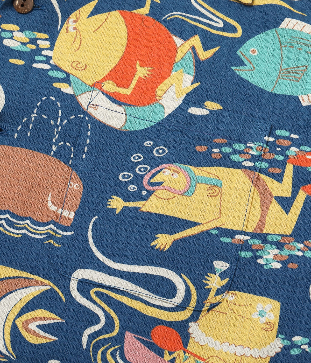 SUN SURF DOBBY COTTON OPEN SHIRT “OCEAN ACTIVITIES” by 柳原良平 with MOOKIE