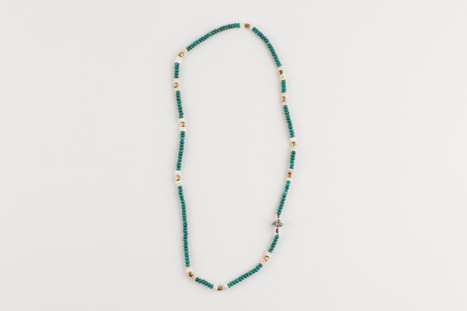 A new addition to Sunku's classic series, the "Bead Necklace & Bracelet," is this turquoise mix.