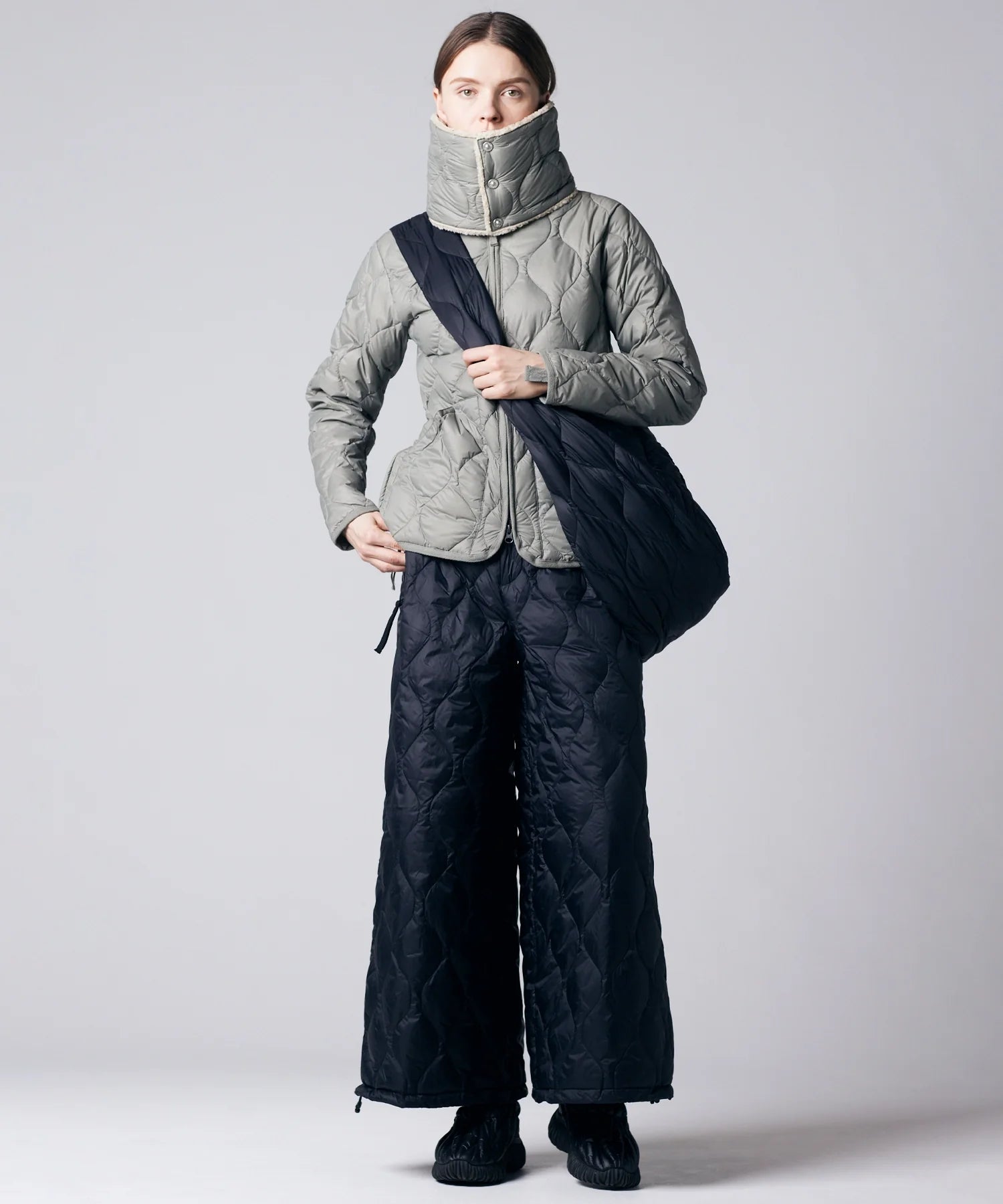 Made of high-density nylon fabric, it's filled with high-quality 800FP down and finished with loofah quilting for a lightweight, soft feel.