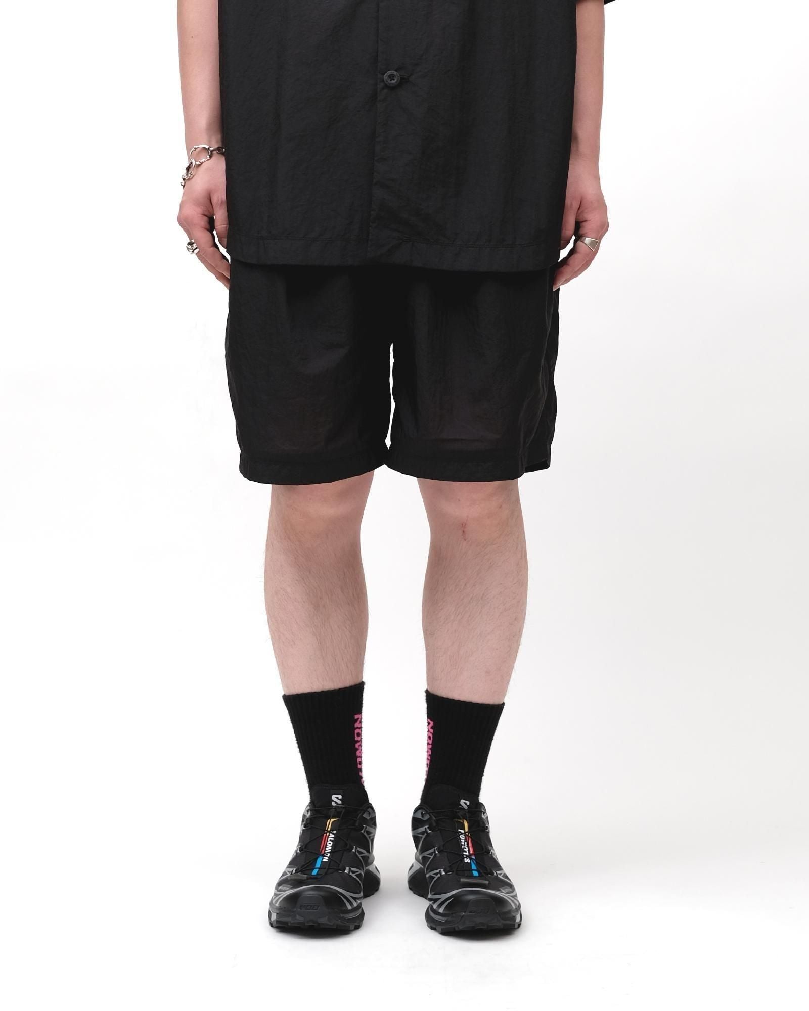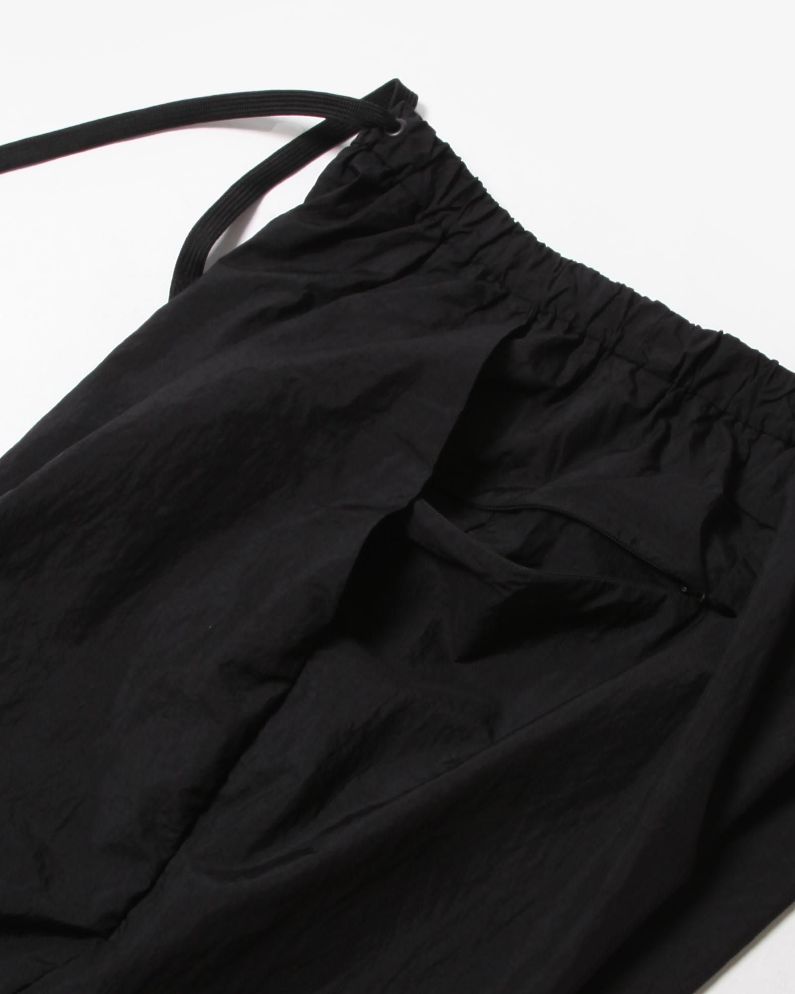 The Wallet Short Resort is a short-length version of the classic Wallet Pants Resort. The waist has a drawstring and tucks, and the thighs and hem have a voluminous fabric for a wide silhouette. As the name suggests, this model is comfortable and easy to wear, as if you were relaxing at a resort. The opening and closing part is wide and deep, and the zipper pocket is designed to be the size of a long wallet, making it very practical. It can store not only your passport but also your air ticket. Since you can access it with your hands in the pocket, it can be used as a security pocket, and it is designed so that you can take things in and out of the pocket without standing up in a narrow cabin.