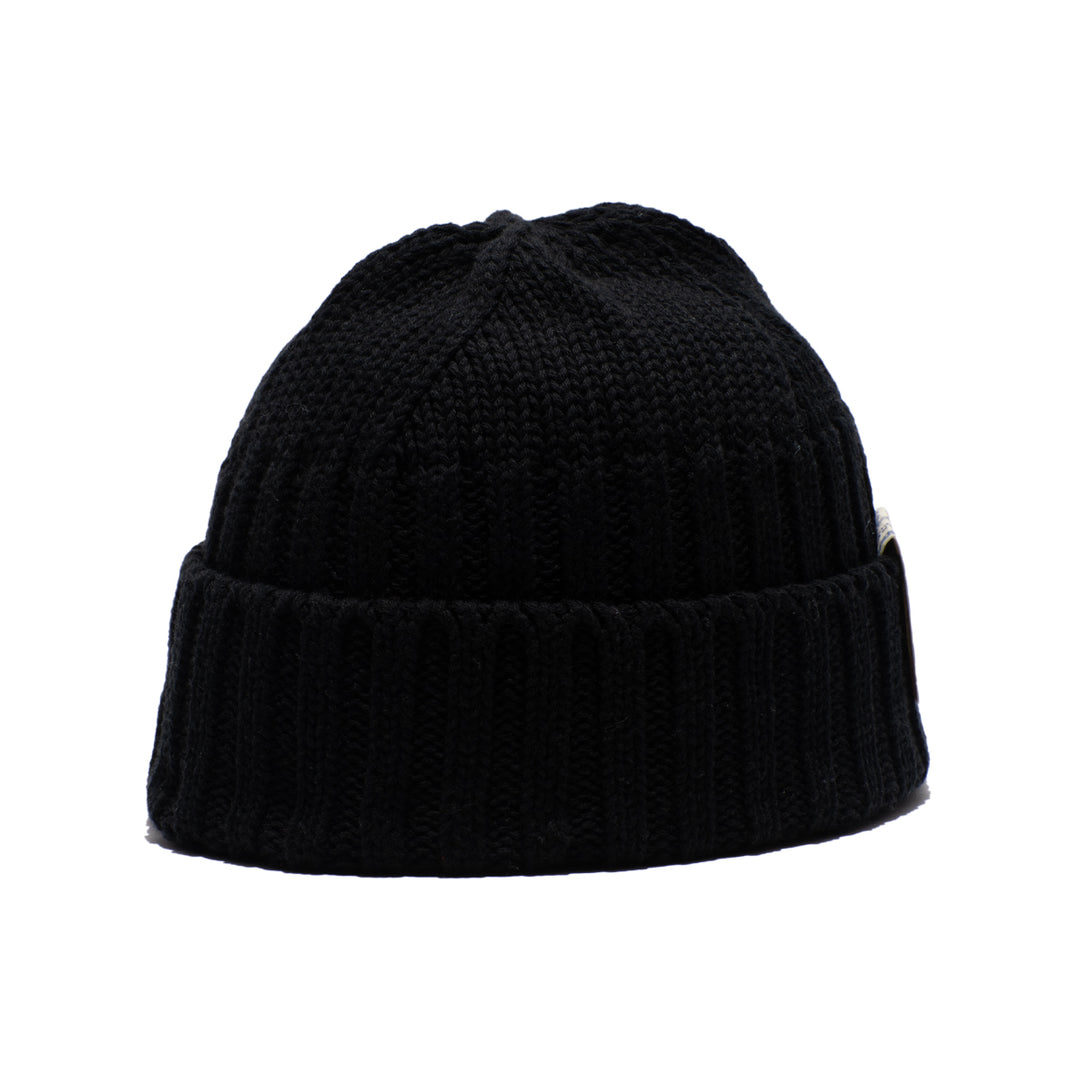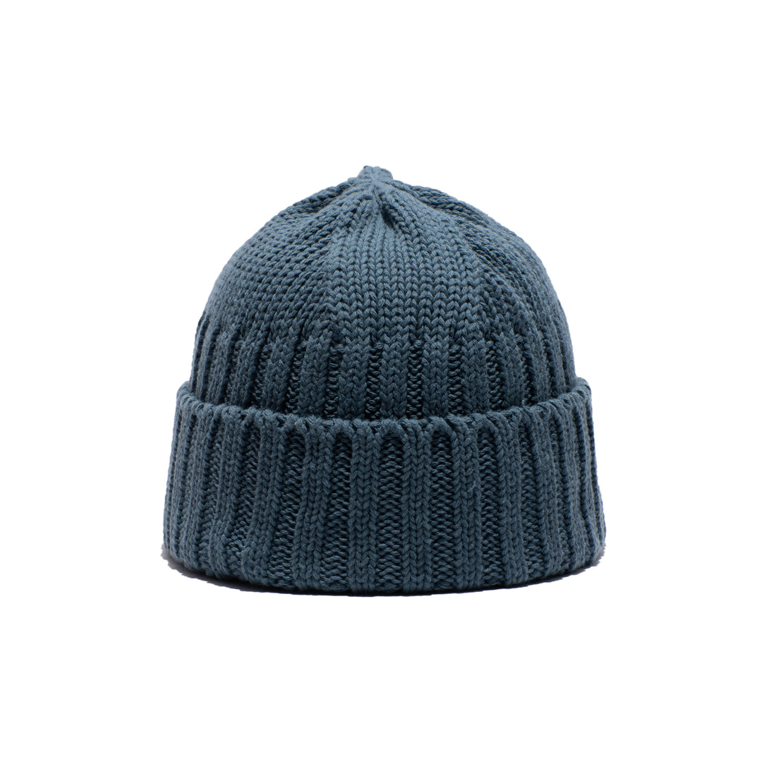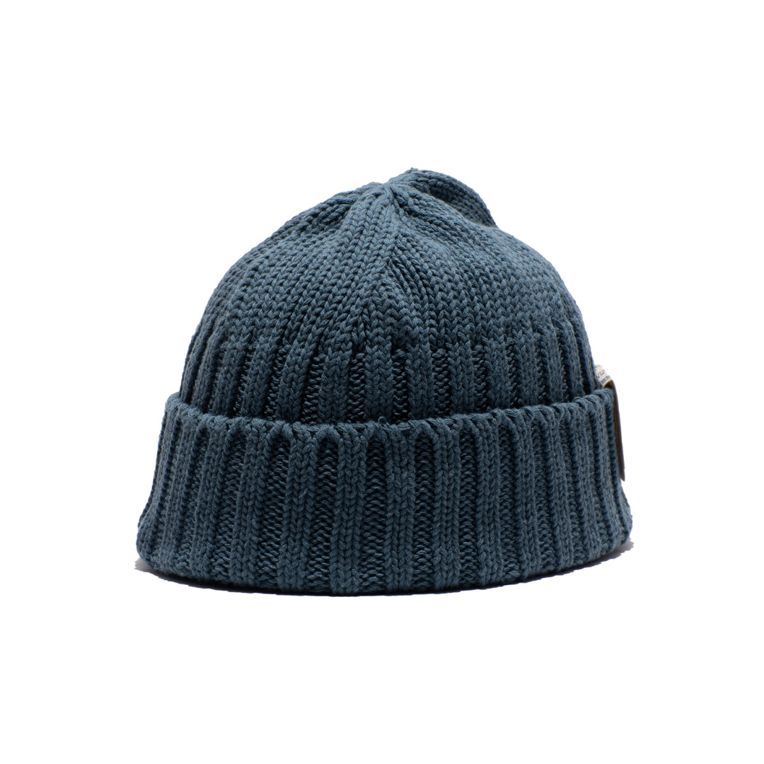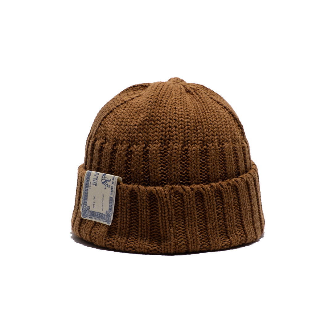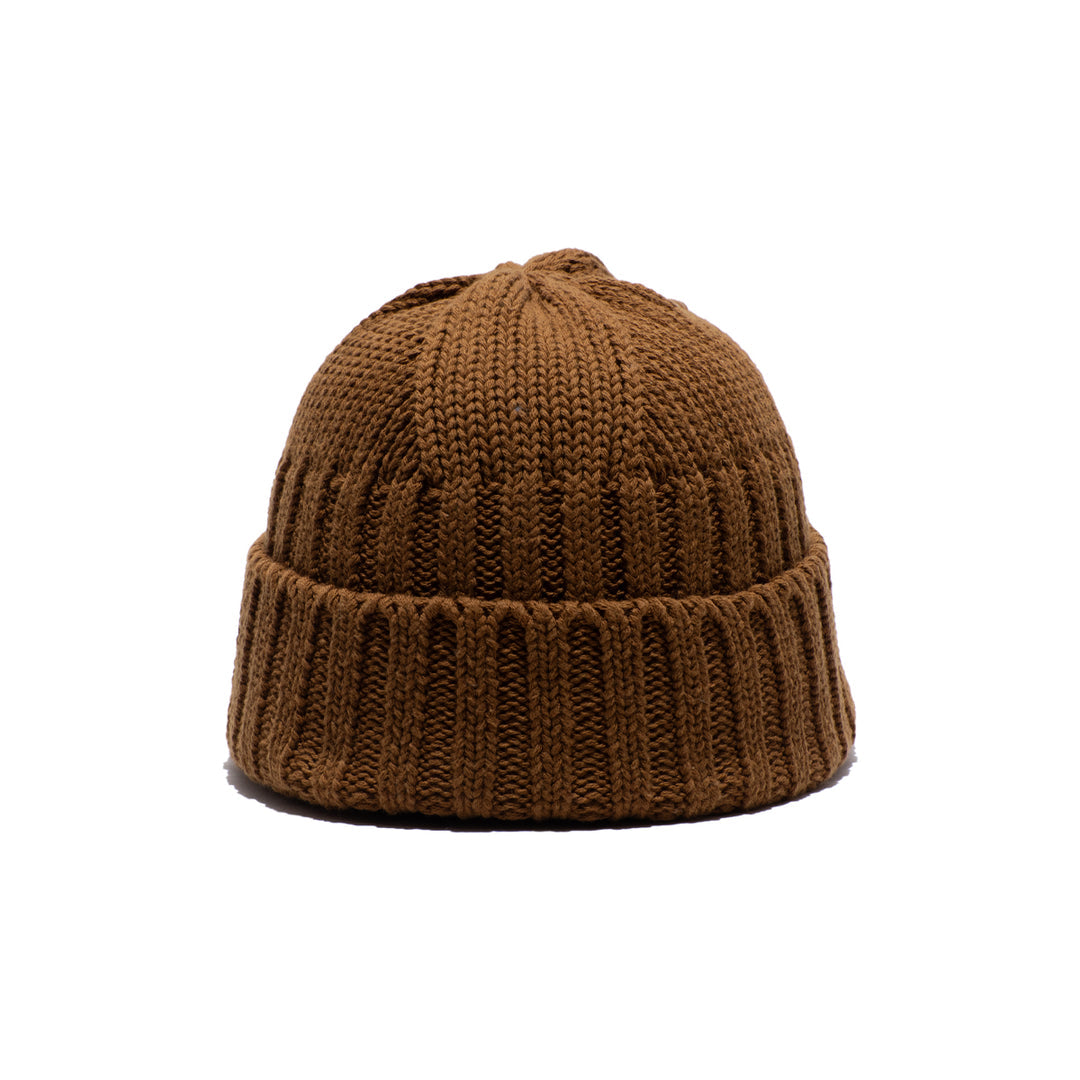 This seamless watch cap is a reference to the American Red Cross knit caps of the 1940s, using 100% cotton yarn and ribbed and molded halfway up the crown.