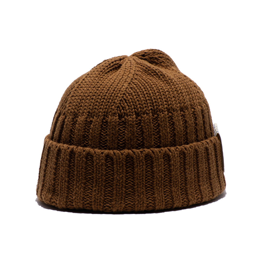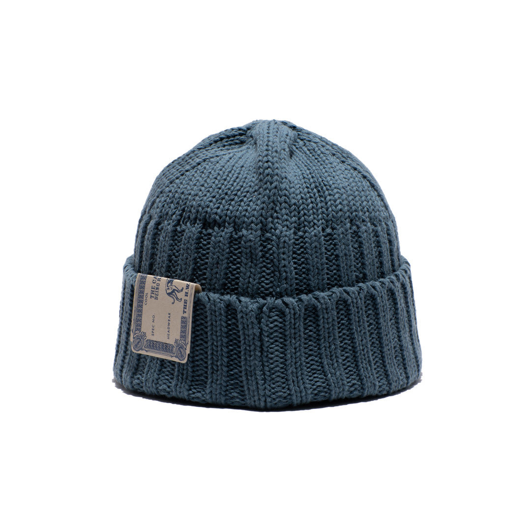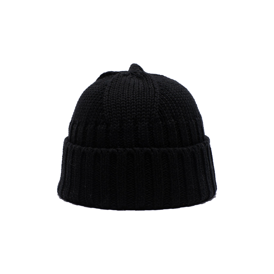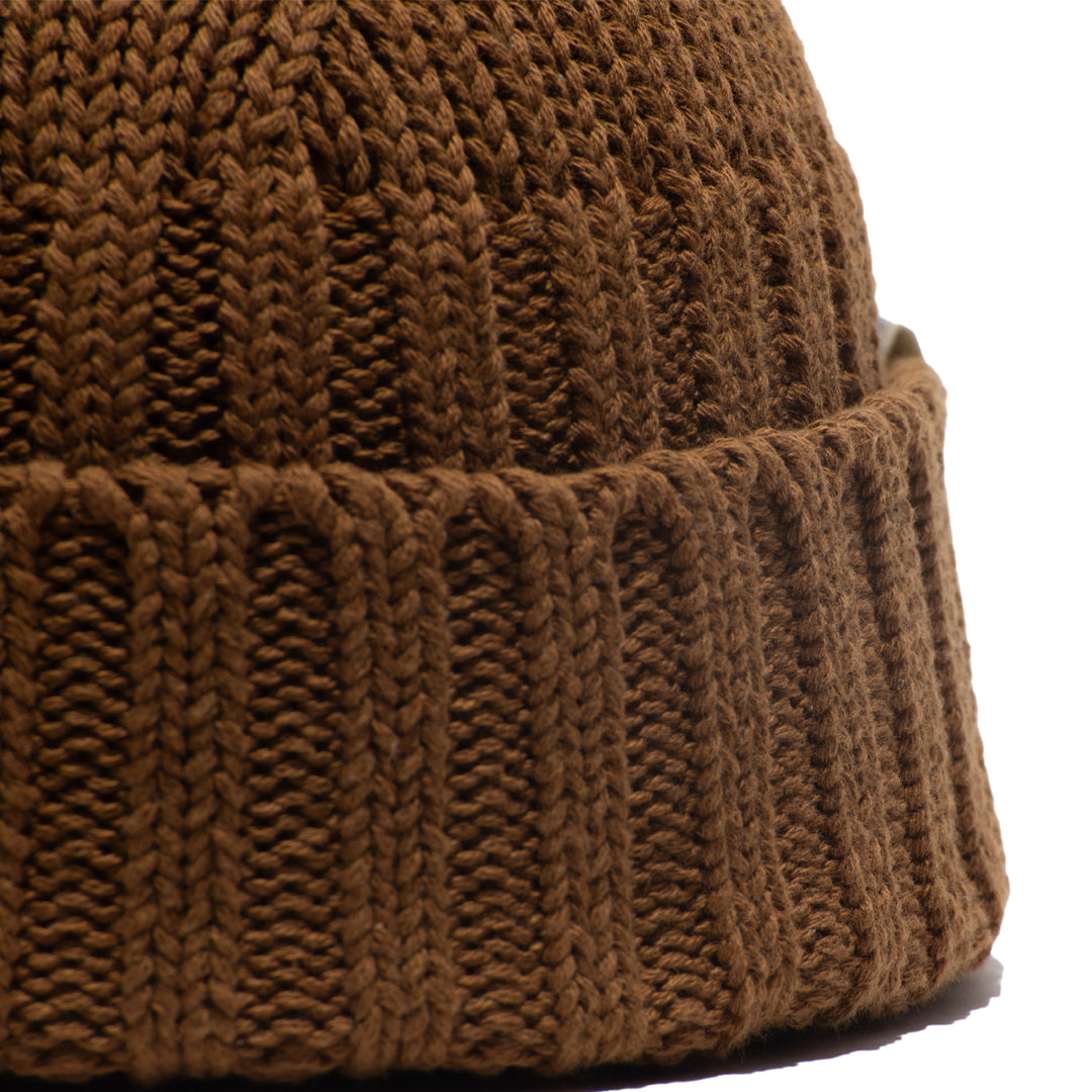 This seamless watch cap is a reference to the American Red Cross knit caps of the 1940s, using 100% cotton yarn and ribbed and molded halfway up the crown.