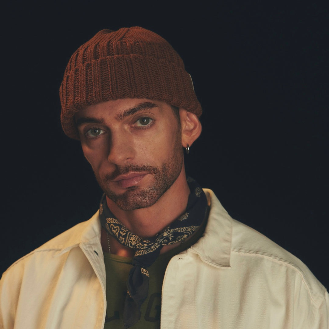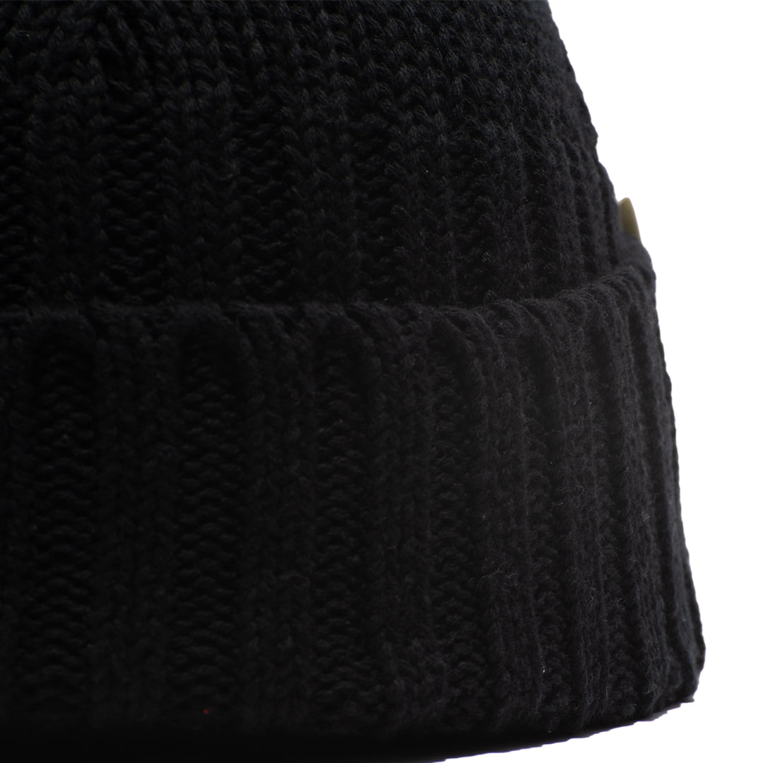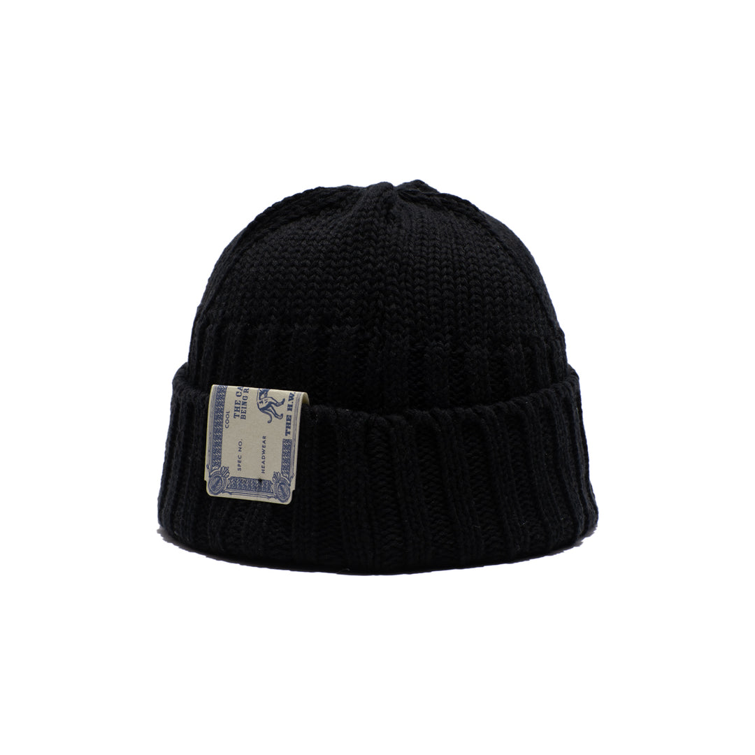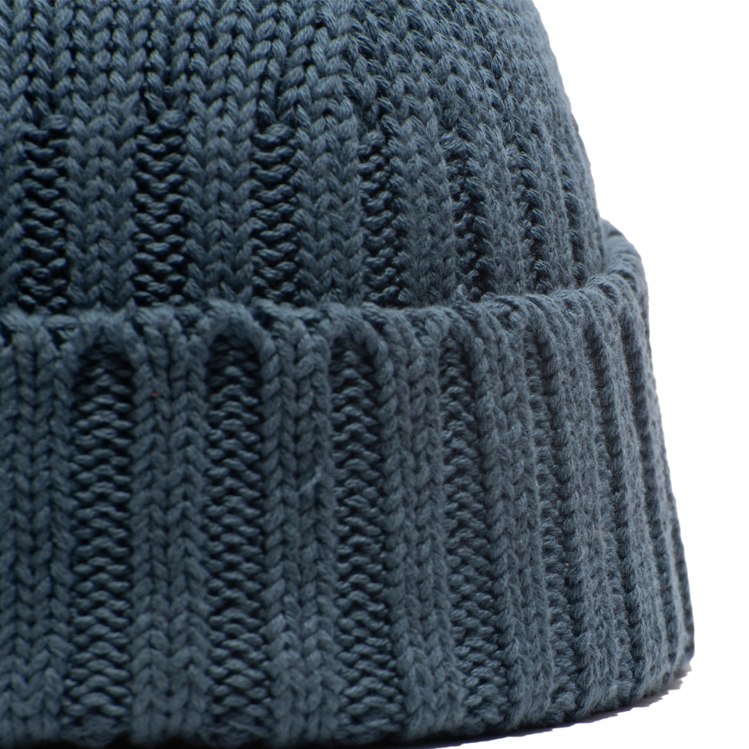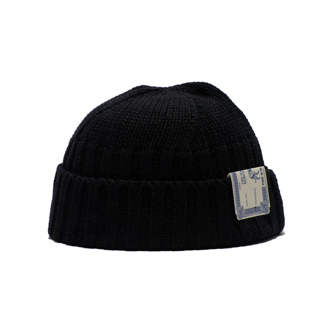 This seamless watch cap is a reference to the American Red Cross knit caps of the 1940s, using 100% cotton yarn and ribbed and molded halfway up the crown.