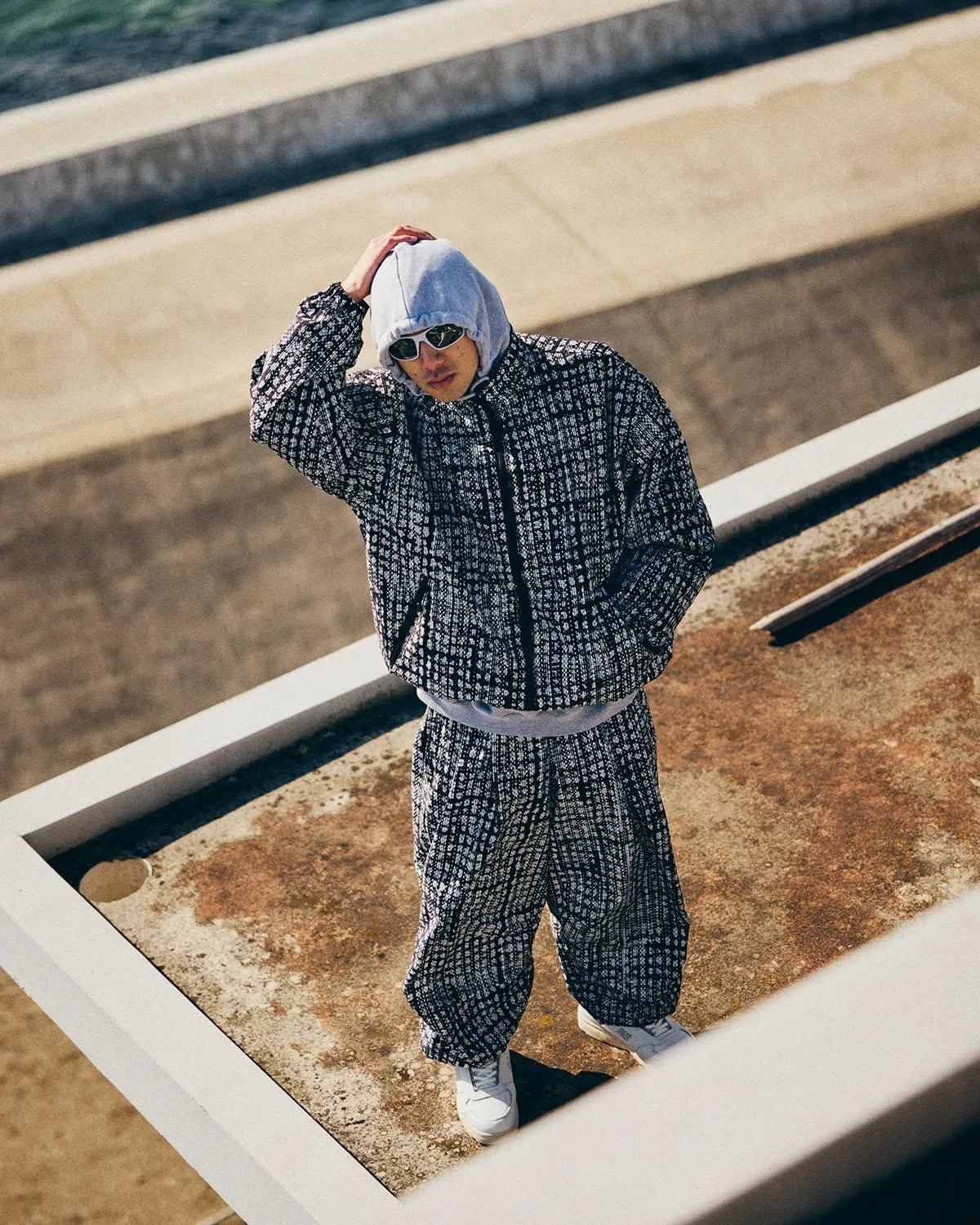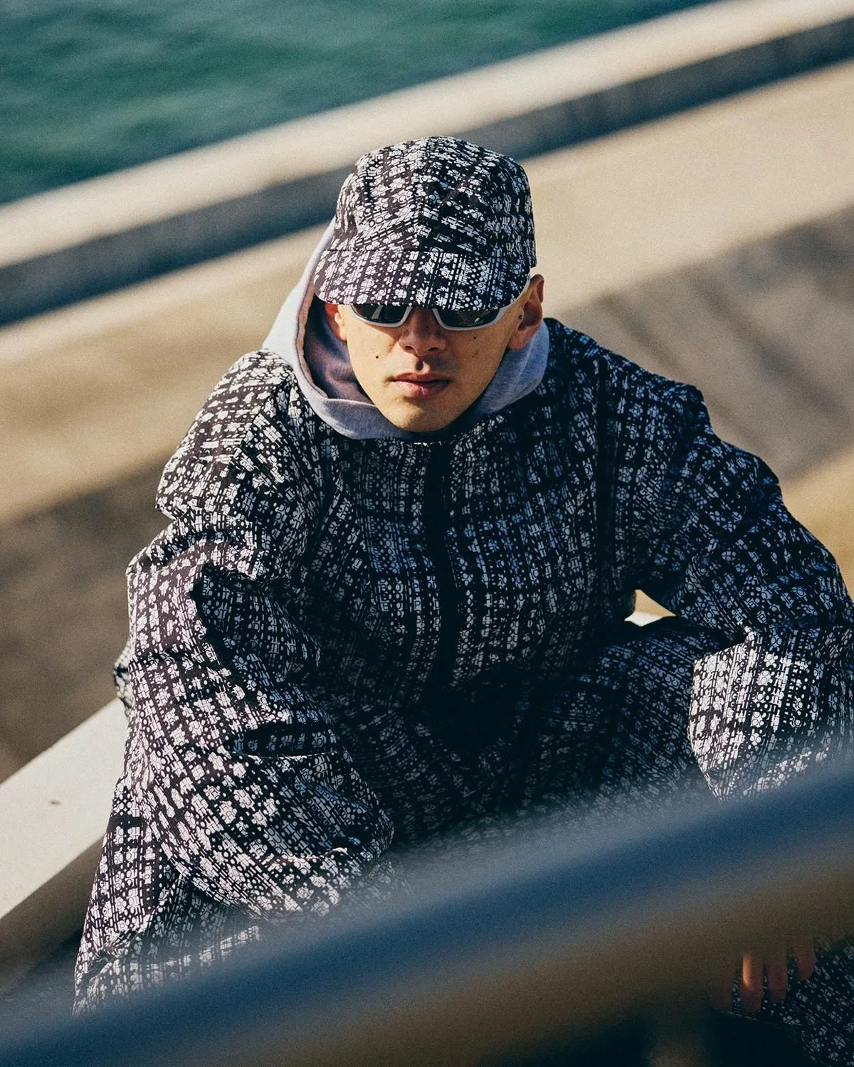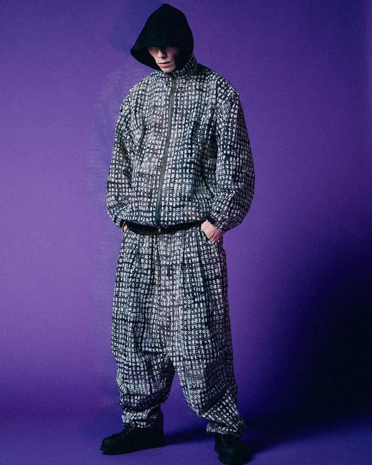 A stand-collar track jacket featuring the brand logo in an all-over graphic.