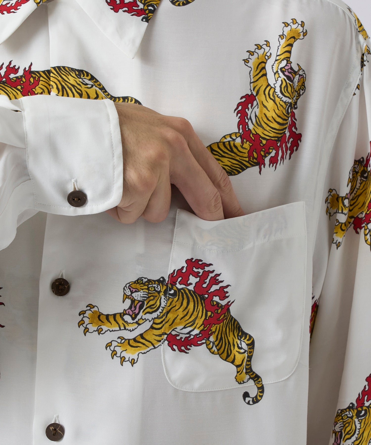 This TIM LEHI / HAWAIIAN SHIRT L/S was created in collaboration with American tattoo and paint artist TIM LEHI.