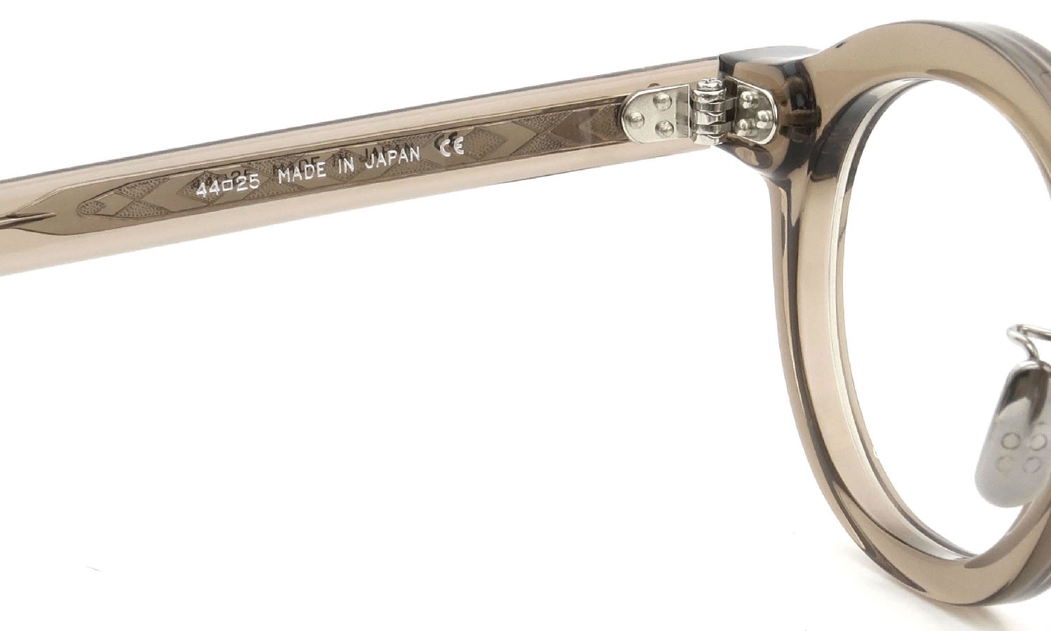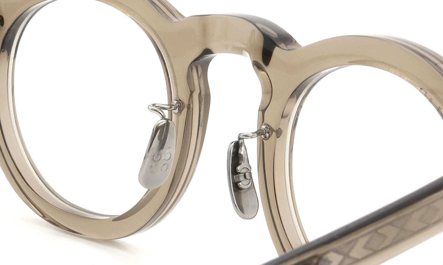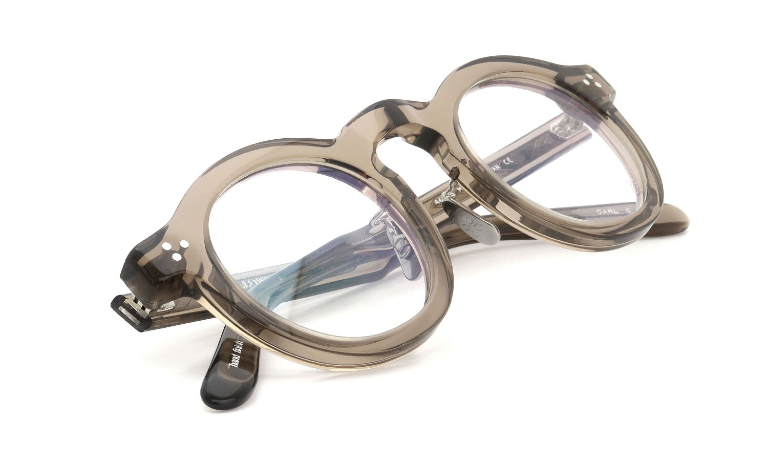 Yellow's plus high bridge round shape cell frame CARL. The details are carefully finished, such as the sturdy three-point riveted rivet, the titanium nose pad, and the engraving of the metal core inside the temple. Overall, this book has a French vintage atmosphere.