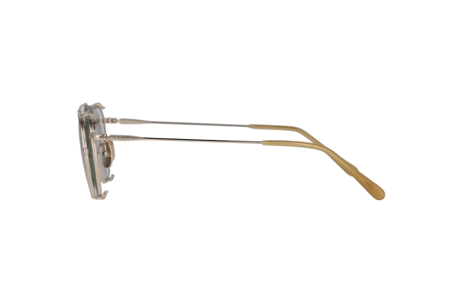 The square-shaped, all-titanium metal frame FRANK comes with clip-on sunglasses. The bridge and temples are intricately engraved for a luxurious look. The clip-on sunglasses transform the style into double-bridge sunglasses. The clips are lightweight and easy to remove thanks to the ultra-elastic titanium bar.