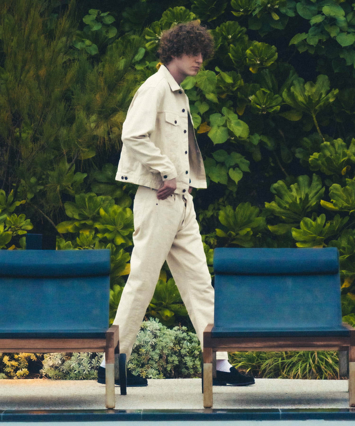 Classic denim jacket crafted from vintage processed katsuragi cotton designed to age naturally and change color with time- the perfect middle ground between a vintage denim jacket and fresh white denim.