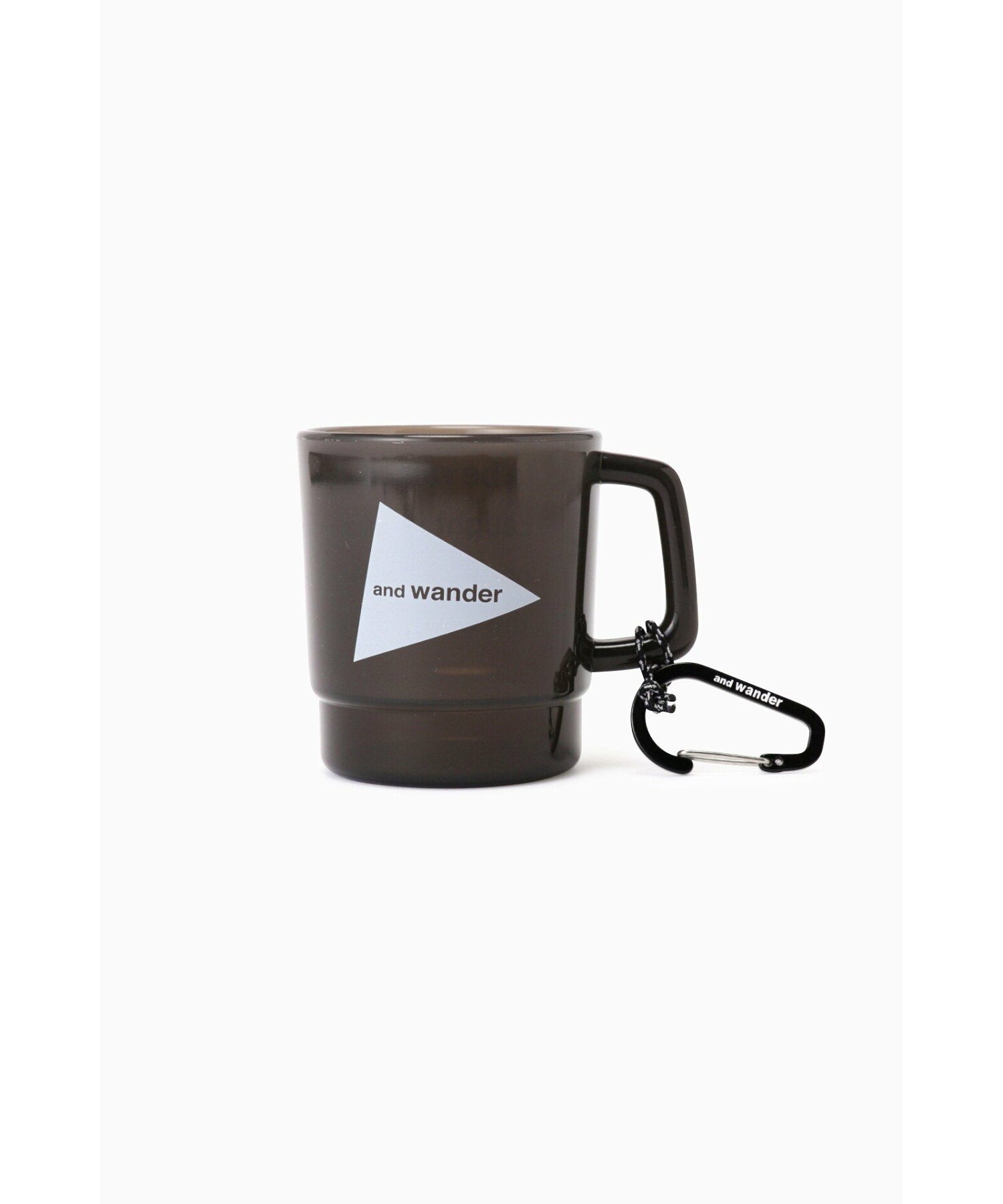 A lightweight BPA-free polypropylene mug with the and wander logo printed on it.