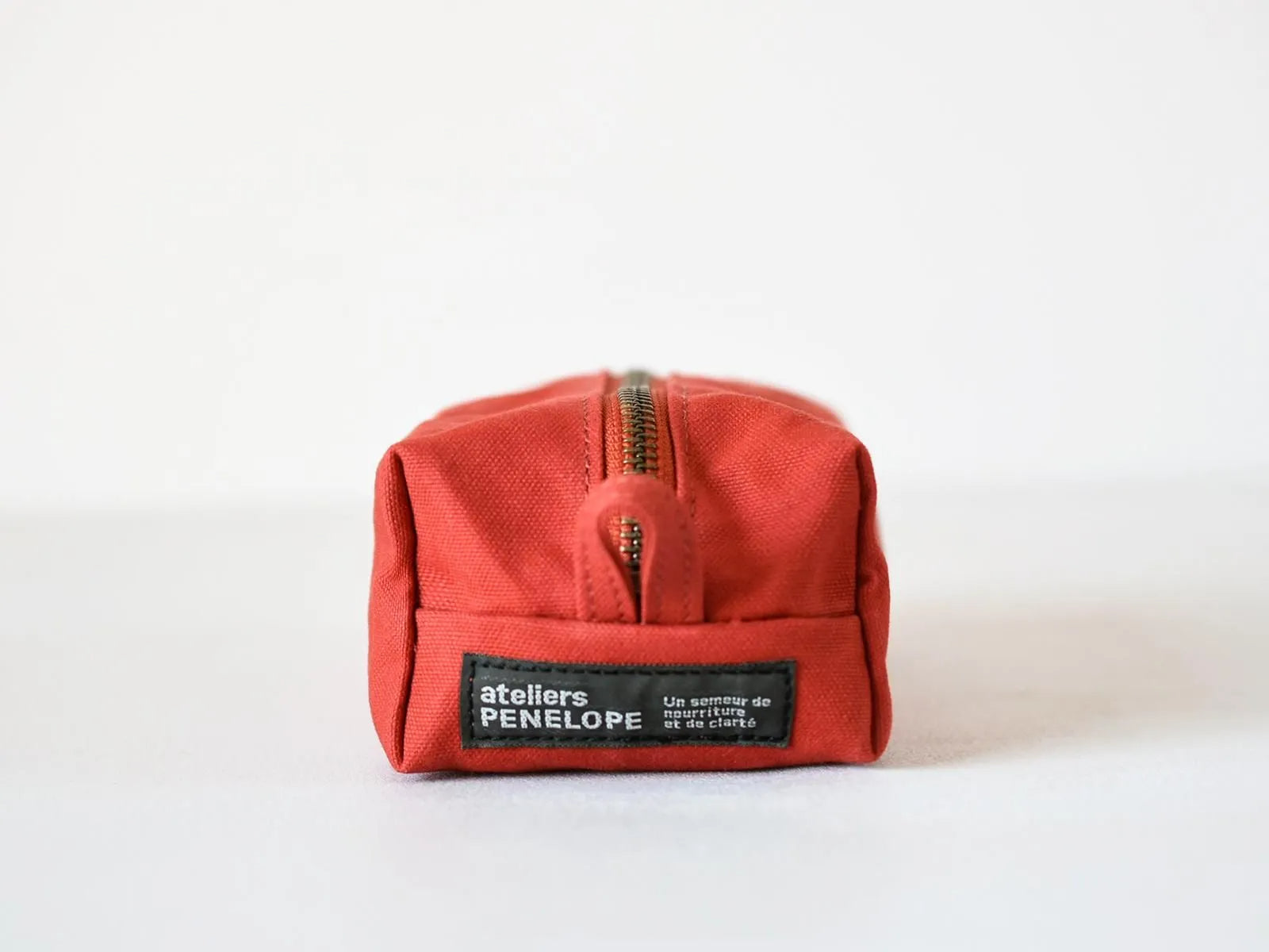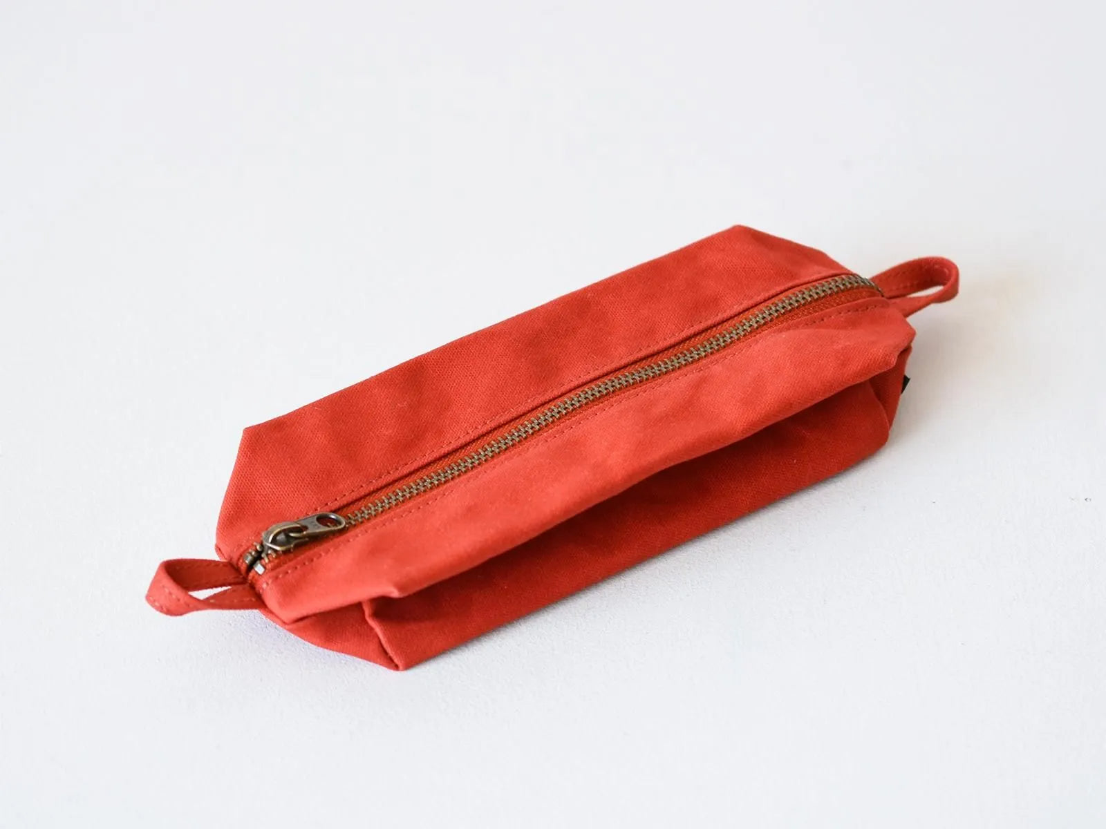 This pouch is made from No. 10 canvas and is convenient for organizing small items. Its three-dimensional form resembles a paper balloon, making it the perfect size for storing stationery, cosmetics, and gadgets. It has a small loop so it can be hung on a hook, etc. It is recommended not only for carrying around, but also for storing items on your desk.