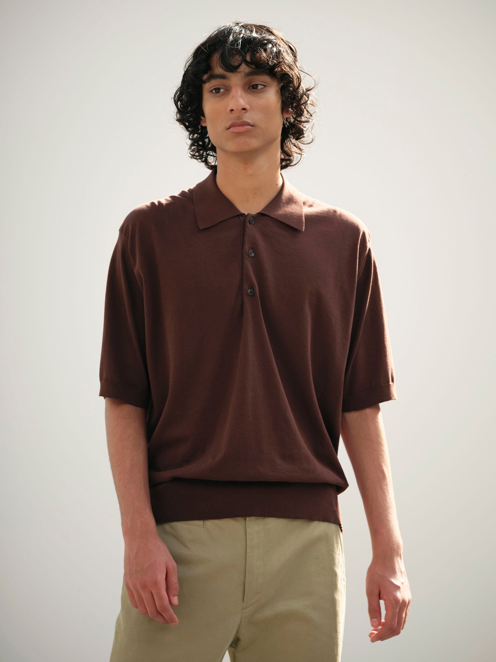 AURALEE SUPER HIGH GAUGE COTTON KNIT POLO