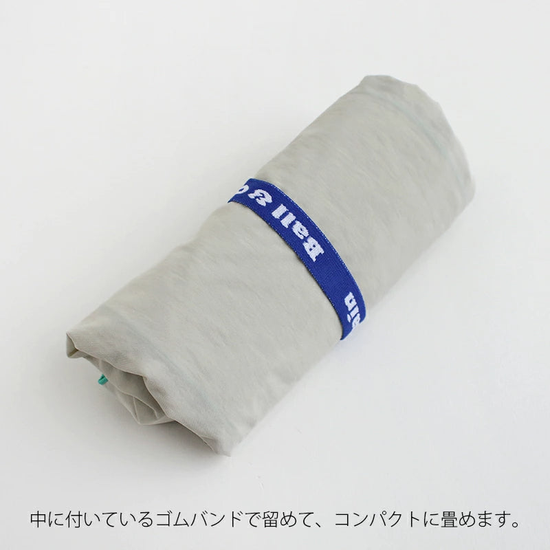 When folded into a round shape and secured with the included rubber band, it becomes a compact size about the size of the palm of your hand.
