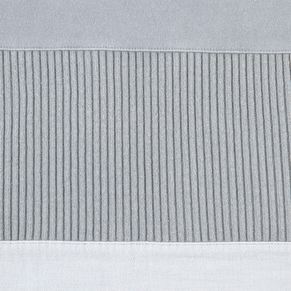 Color and fabric change on the V-shaped gusset, front body, and sleeve.
