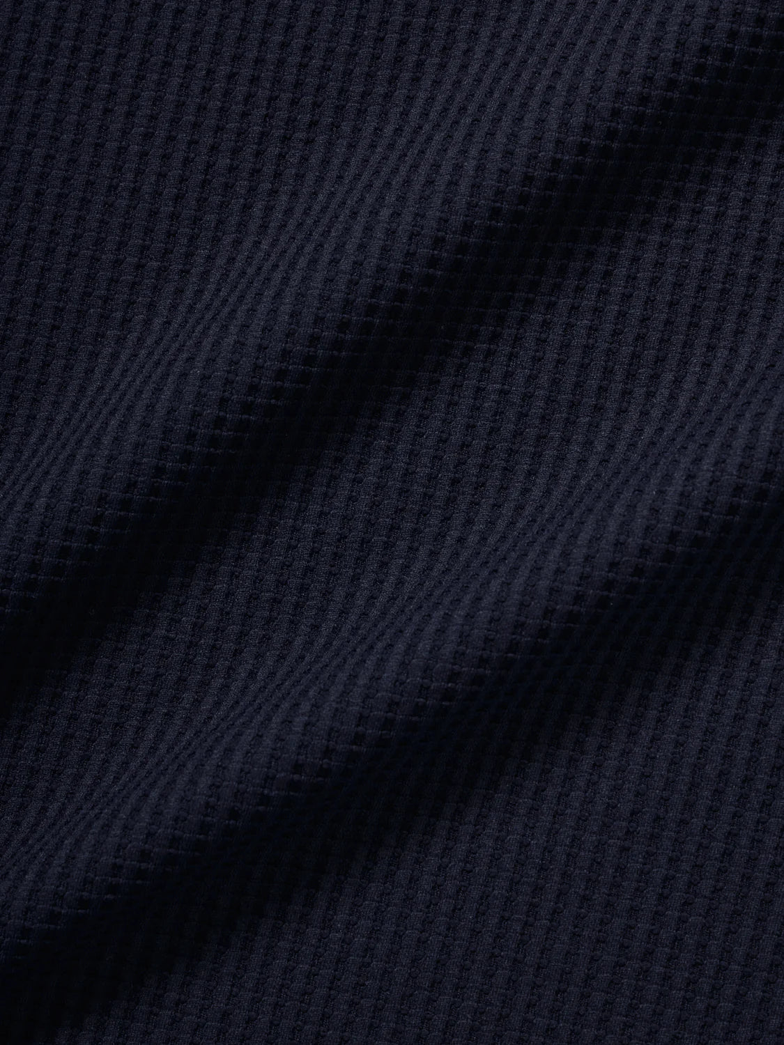 This thermal T-shirt is made from waffle fabric. The classic rounded hem is finished with a seam stitching. Perfect for layering or as cold weather wear during the spring and spring seasons.