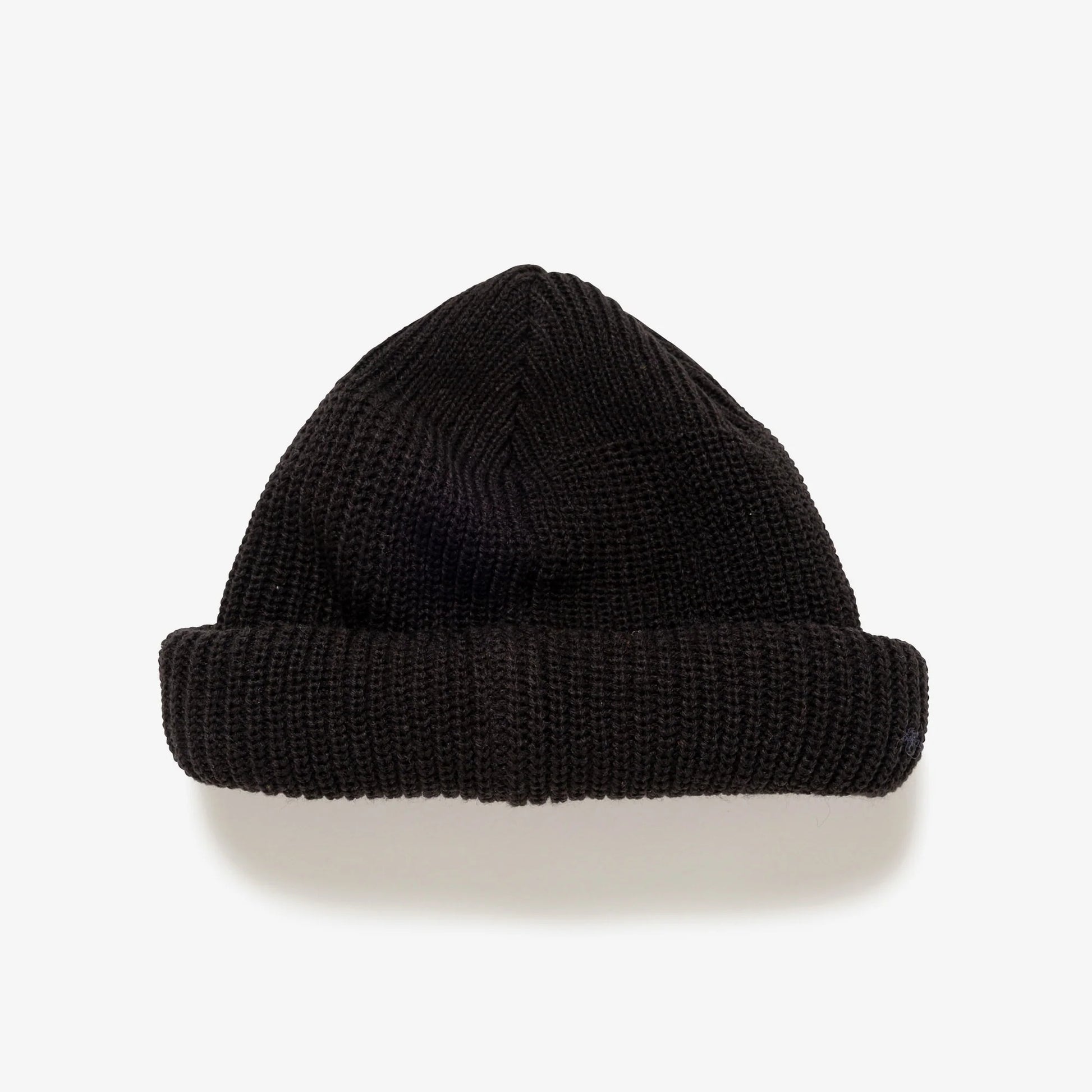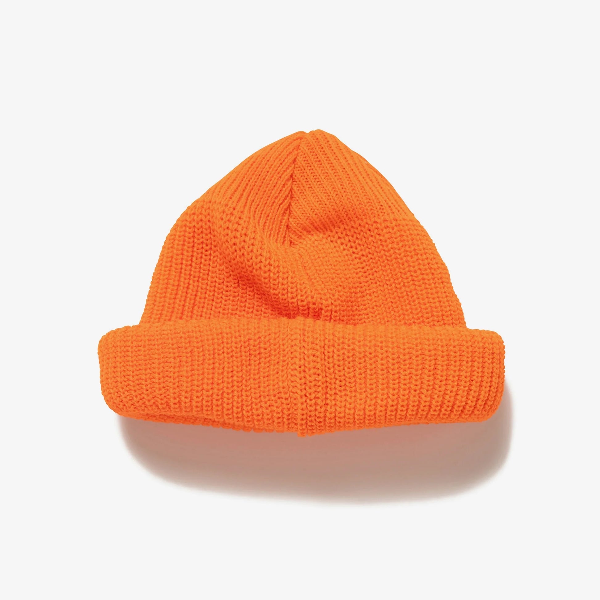 This loose-knit beanie is made with acrylic yarn and features an embroidered CACHALOT logo on the folded cuff. Available in beige, black, and orange.
