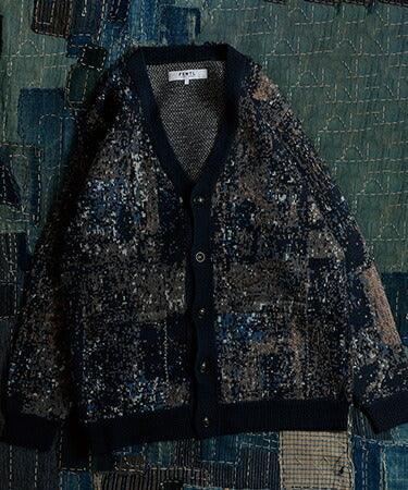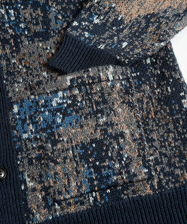 A cardigan that expresses FDMTL's original rag pattern in jacquard.