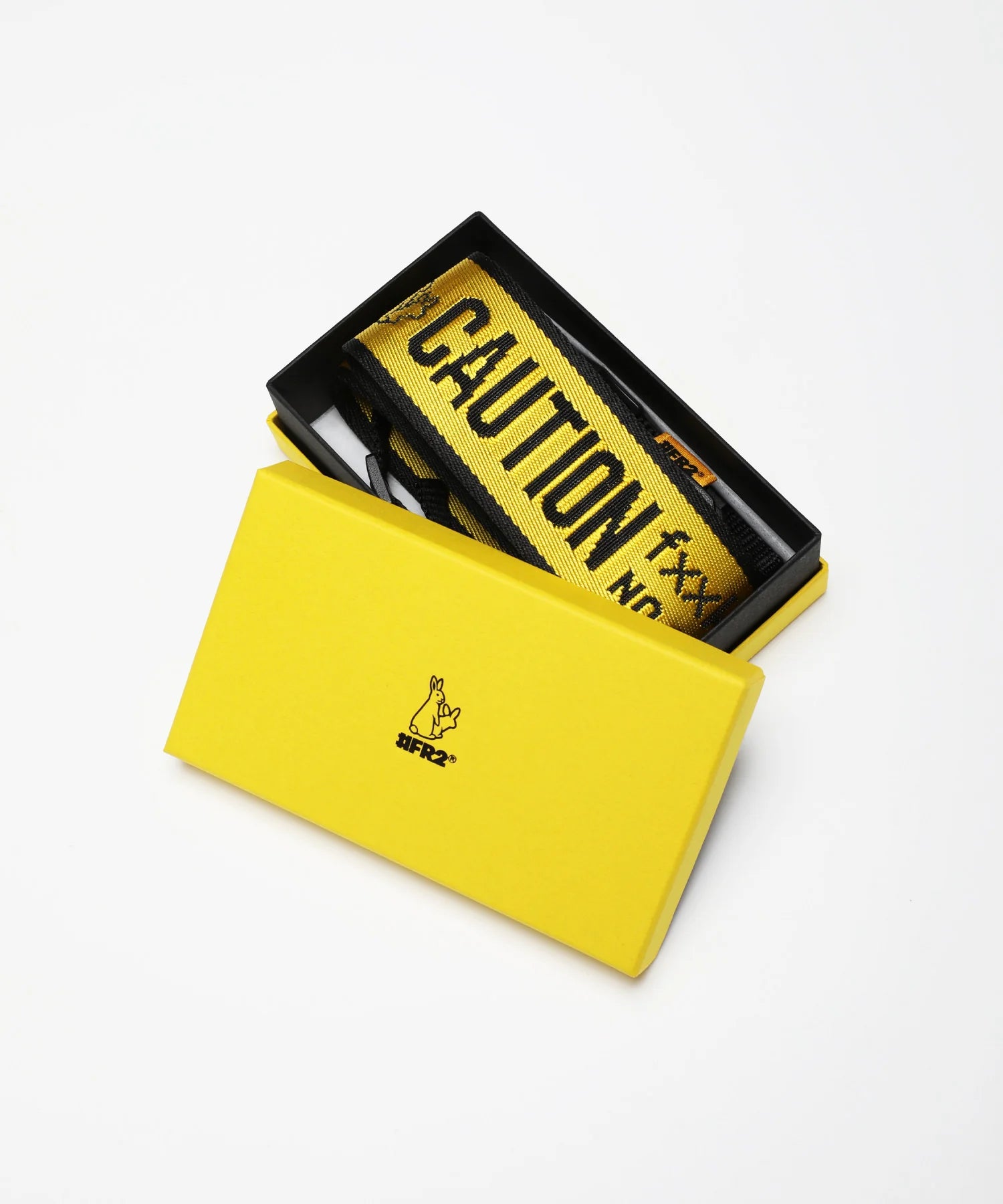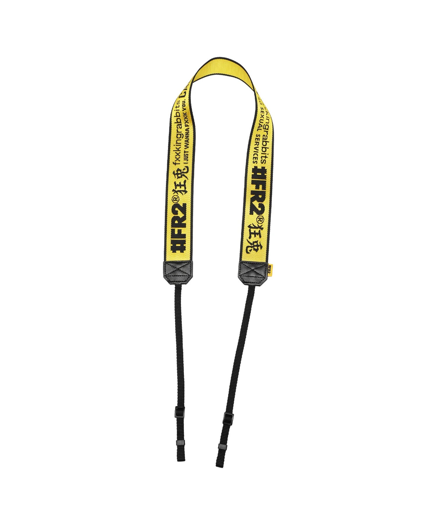 An item that perfectly fits the brand concept of "head out into the world with just a camera in your hand." The brand logo, icon, and CAUTION logo are lined up to create a striking finish. This item is made to be attached to a camera and hung around your neck when you go out, and is full of the #FR2 brand's unique style.