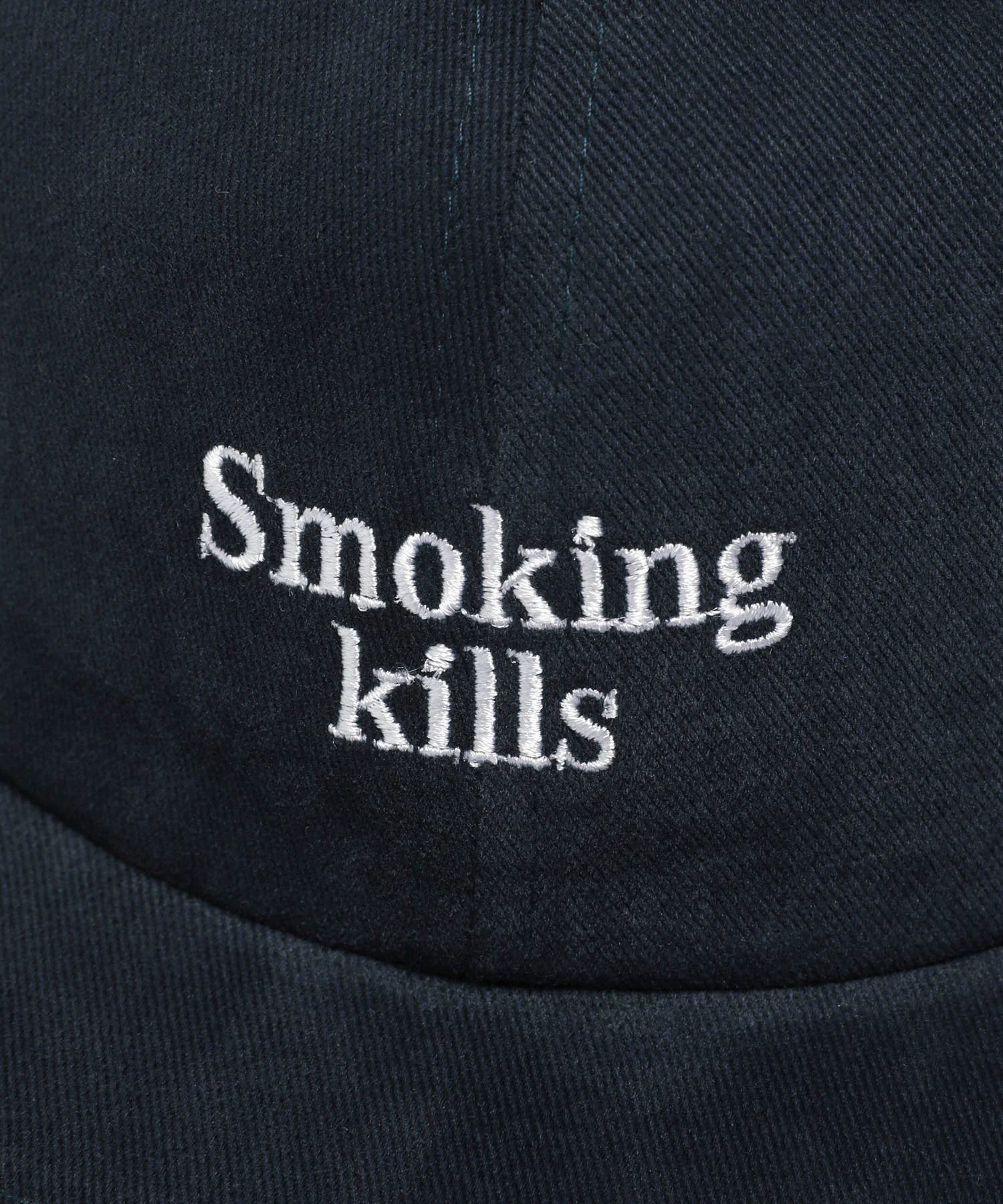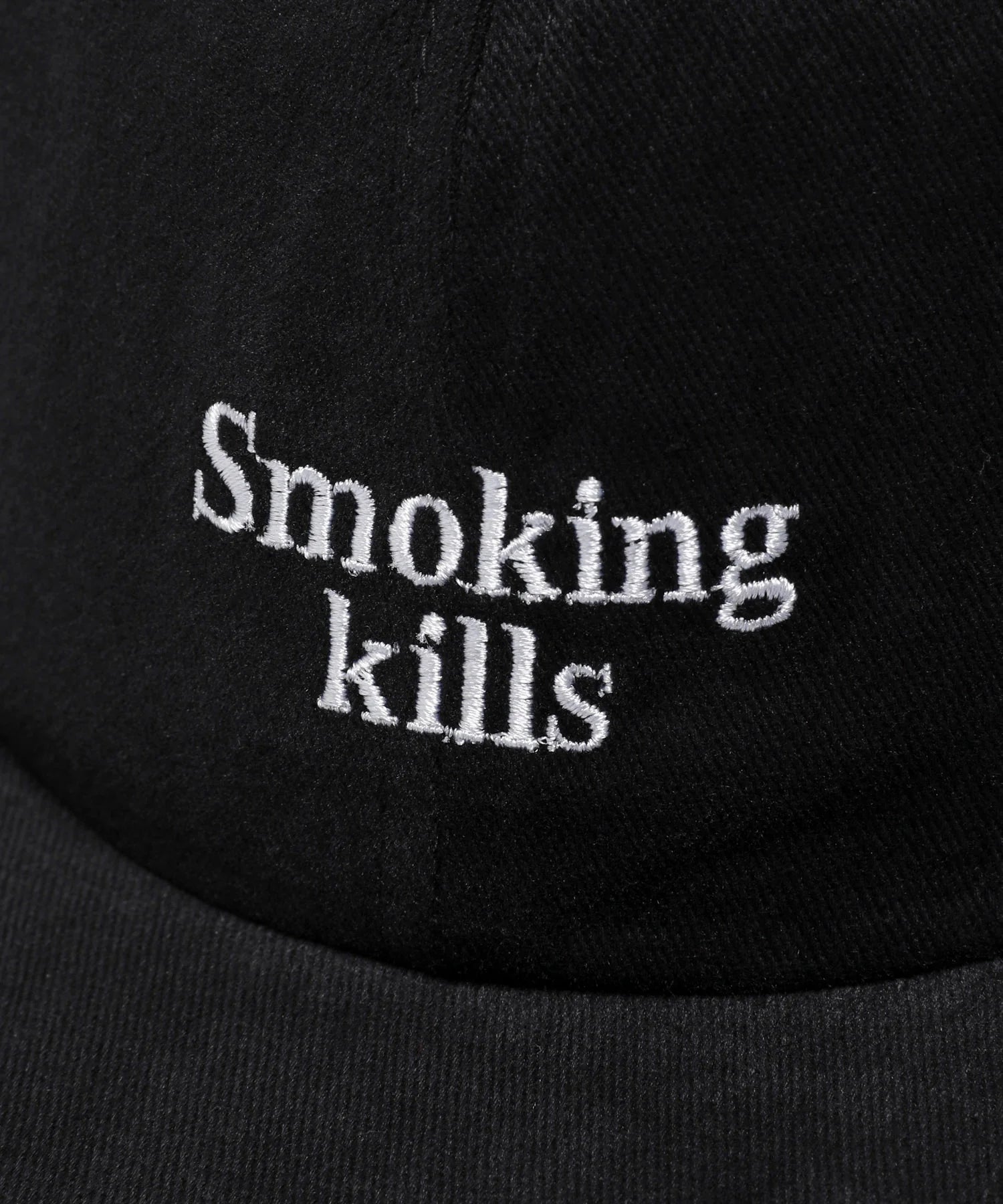 A Cap with a casual accent of the Smoking kills logo embroidered on the front. Icon embroidery on the left side. It is a versatile item that can be easily incorporated as a plus one for coordination, and can be incorporated from everyday use to holiday styles.
