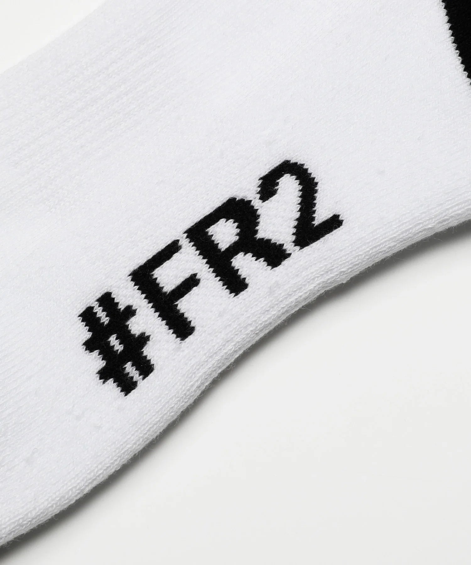 Socks that express the Caution logo with a vertical woven pattern from the ankle to the calf. The Yellow logo is an accent by adopting a monotone color scheme of White and Black as a base. By putting a logo on the sole of the foot, it has a strong presence even when you take it off.